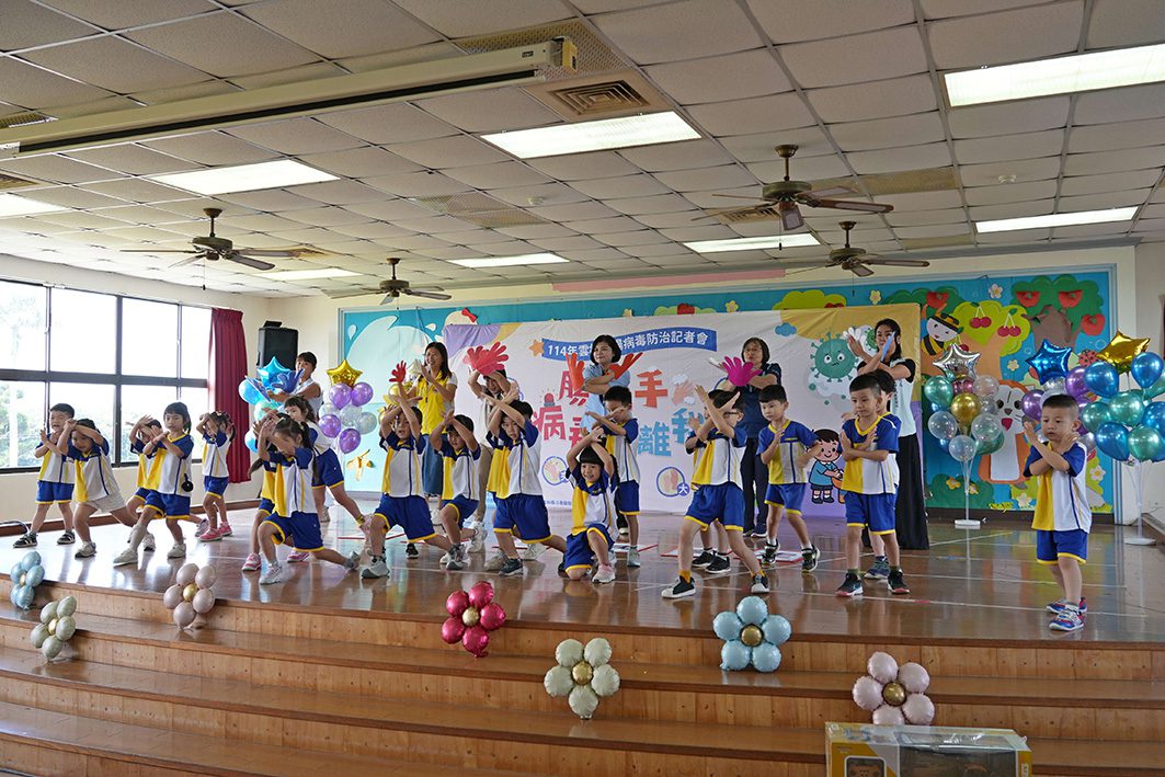 有鑑於國內近四週腸病毒疫情呈緩升趨勢,宣導相關衛生政策尤其重要。雲林縣衛生局今(23)日於斗南鎮立幼兒園舉辦「腸洗手,病毒遠離我」記者會,由縣長張麗善與學童用唱遊等趣味方式,示範「內、外、夾、弓、大、立、腕」洗手七步驟,與「吃東西前、看病前後、接觸幼兒前、上廁所後、擤鼻涕後」的洗手五時機,建立正確洗手觀念,預防腸病毒等傳染病。