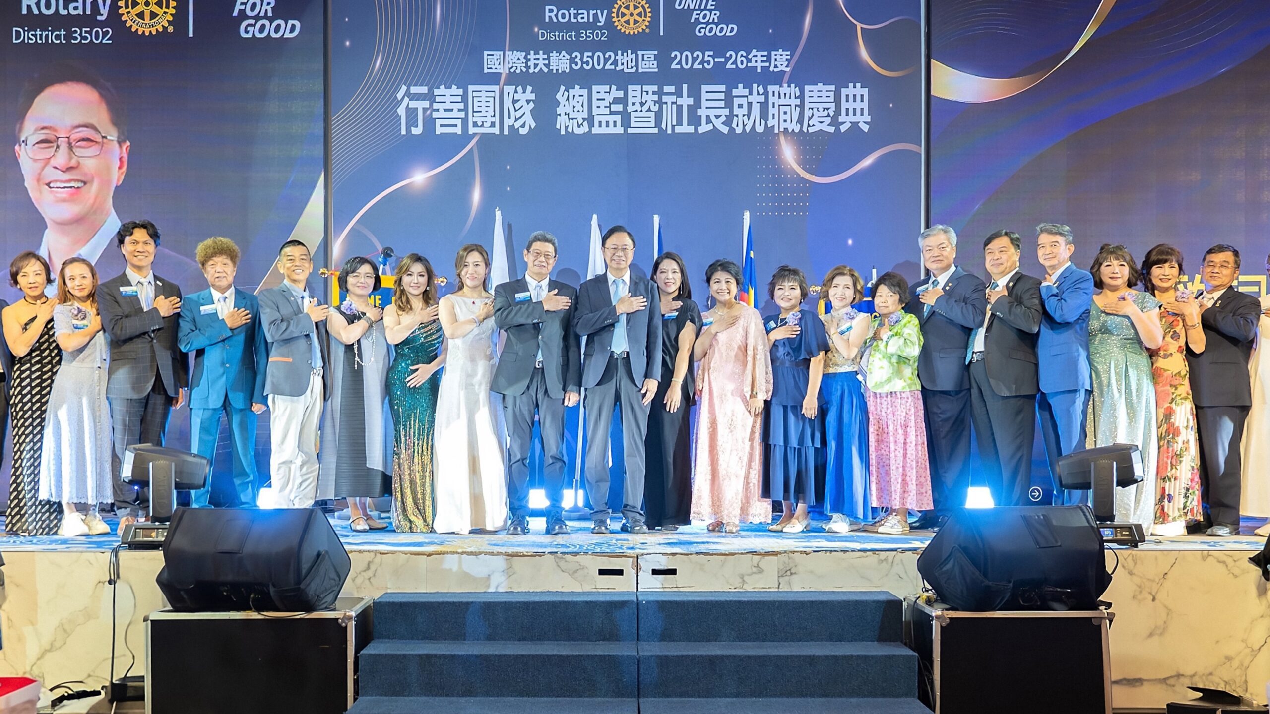 桃園市長張善政(2)日晚間前往桃園區,出席「國際扶輪3502地區2025-26年度行善團隊就職迎新晚會」時表示,國際扶輪3502地區聯合會集結社員力量,匯聚豐沛資源投入多項社會公益,是市政推動重要助力,感謝卸任總監陳清榮及林淑華,在任期內用心付出,帶領成員深耕公益,以及新任總監張玉斌,上任前便積極了解市府各項社會福利政策及可能合作方向,盼未來能持續帶領社員,與市府緊密合作,為社會公益提供更大助力。