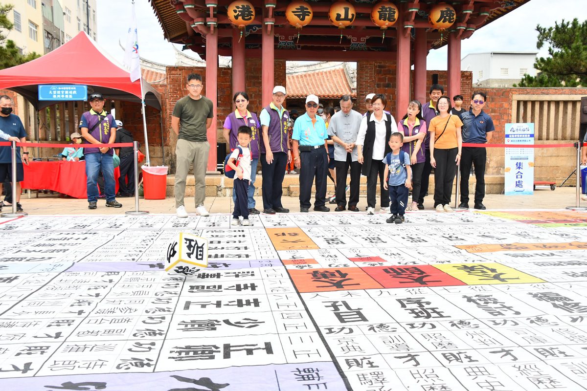 彰化縣政府於端午節今(31)日下午在鹿港龍山寺廣場舉辦「2025鹿港慶端陽系列活動-趣味闖關慶端陽」,縣長王惠美與小朋友一起體驗各式童玩及大型陞官圖遊戲,且為推展傳統藝術,特別邀請彰化縣書法學會書法家現場揮毫,讓民眾能近距離欣賞書法藝術的現場揮毫獨特魅力,且由彰化縣書法學會理事長吳肇勳老師展示寬2公尺、長10公尺的巨幅書作,為活動增添亮點。另外,為推展書法藝術,崇晉書道學會也特別在龍山寺中庭迴廊展出會員聯展,匯集多位書法家作品,展現書法文化之美,現場也發送水果給民眾免費品嘗,與來自全國各地的好朋友一起歡度端午節。