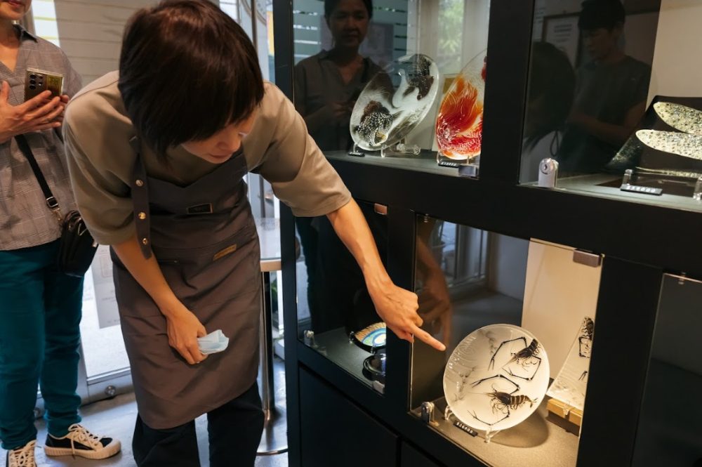 她特別提到自己的代表作《墨蝦》。在創作過程中,她必須承受控溫的壓力與體能的消耗,長時間保持專注,才得以完成這件作品。製作這件作品的經驗不僅展現她的技術,更證明她能在嚴苛的條件下,憑藉觀察力與穩定節奏,繳出專業的成績。