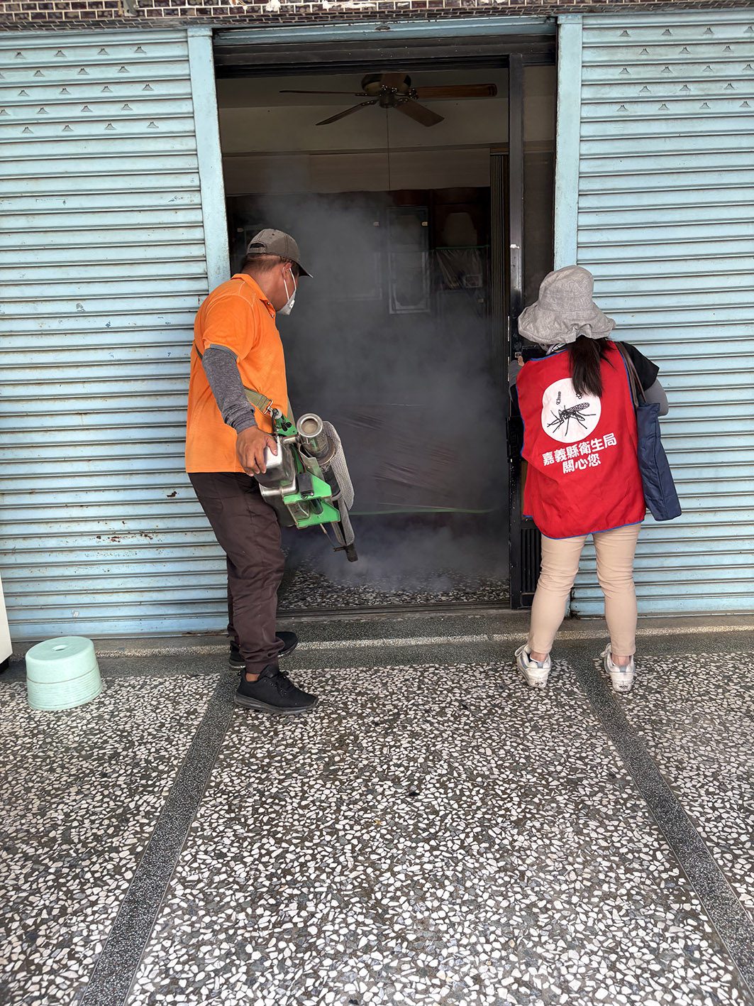 ▲衛生局人員至個案家中消毒。(圖/嘉義縣政府提供)