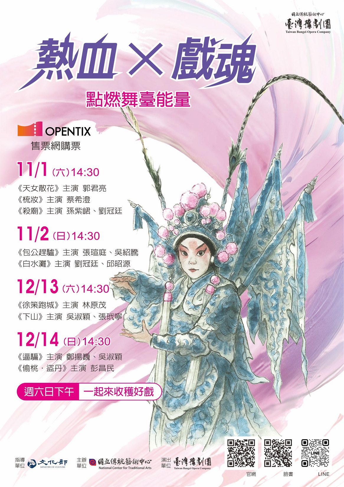 國立傳統藝術中心臺灣豫劇團為培育新世代戲曲生力軍,將於今(114)年11月至12月推出四場別開生面的《2025飆戲:熱血╳戲魂 點燃舞臺能量》系列演出。活動訂於11月1日、2日及12月13日、14日,在高雄左營豫劇團排練場登場。此次演出打破傳統師徒制框架,讓青年與中生代演員共同登臺,以「實戰」取代「授課」,從舞臺對戲中傳承技藝,更讓幕後的戲服管理人員跨界上場,展現深藏已久的表演能量。