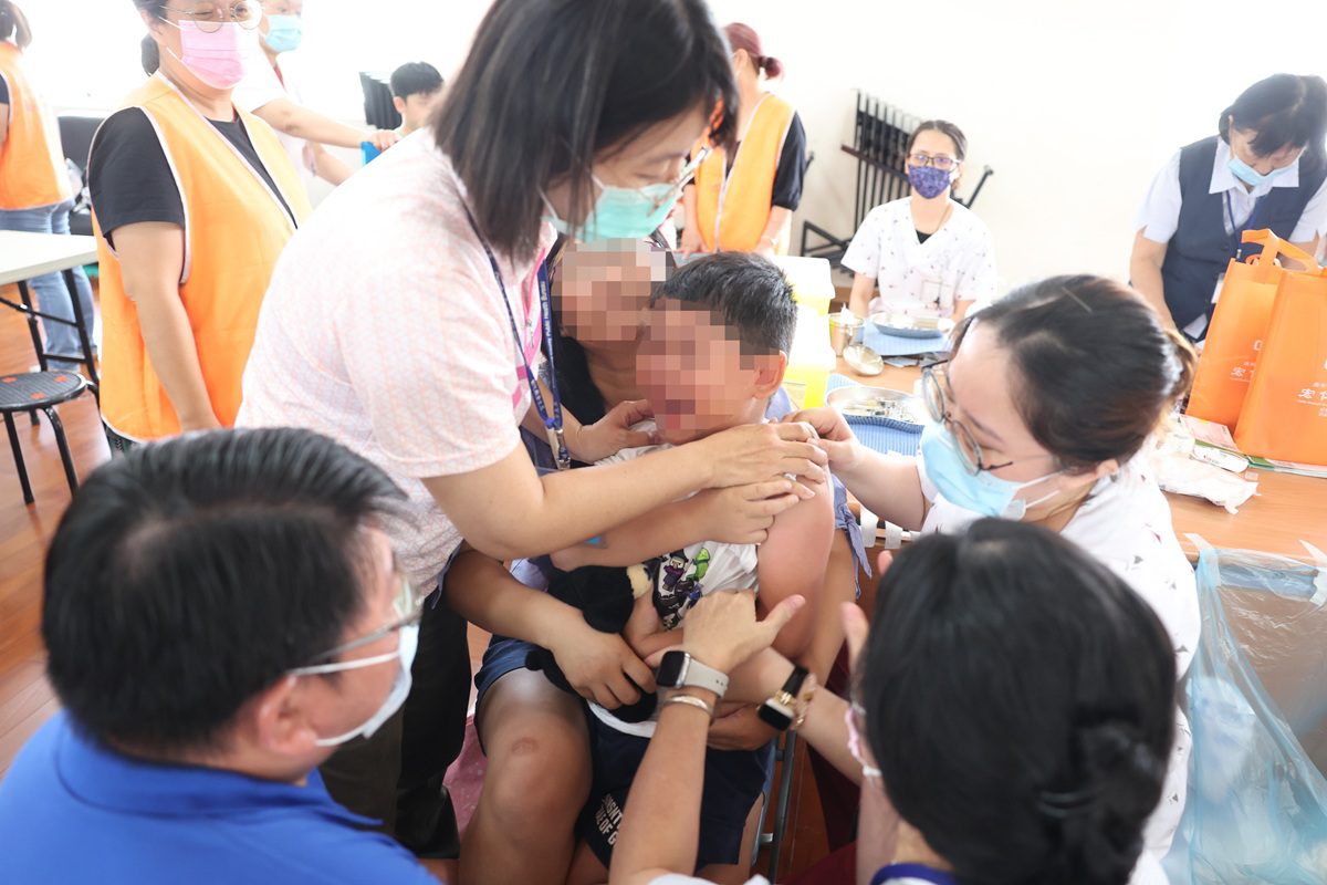 湖北國小校長莊世雄說,老師群率先接種疫苗,示範給學童看,多數學童勇敢接種,不過確實也有年幼學童較緊張,嚇得嚎啕大哭,因此該校也出動十餘名愛心志工協助,透過安撫、拍照、擁抱等方式,協助學童轉移注意力。
