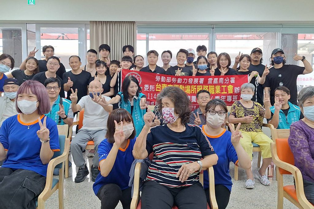 關懷弱勢回饋社會;展現準教練社會責任!結訓日,這一期準教練團隊特別將學習成果回饋社會,分別至「美佑長春日照中心」與「惠山園身心障礙社區作業設施及惠山大豐社區長照機構」,辦理職訓公益成果體驗活動。內容由準教練精心訓練設計,包括:遊戲認知訓練、律動知覺訓練、肌耐力訓練、伸展舒筋訓練。