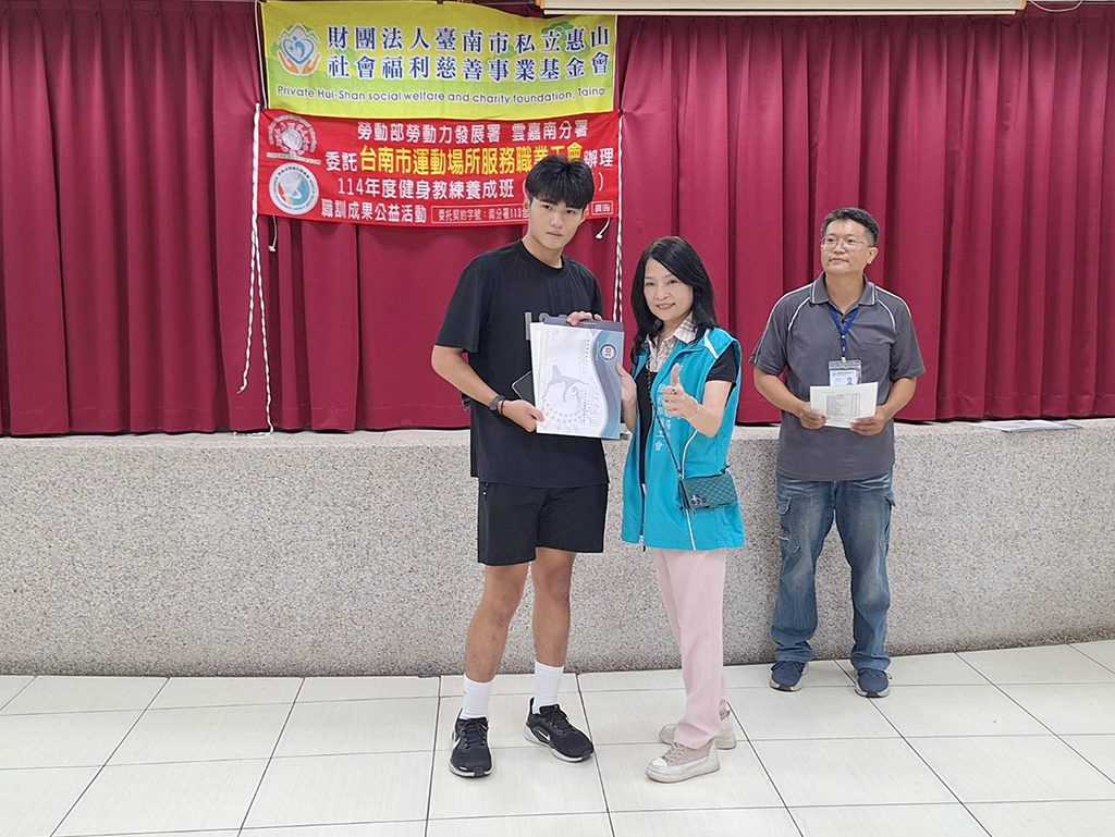 【記者吳玉惠/臺南報導】 勞動部勞動力發展署雲嘉南分署委託台南市運動場所服務職業工會辦理「健身教練養成班(青年專班)02期」於今(10月17日)圓滿結訓。該班培養專業技能的健身教練,更將所學實際應用於高齡與弱勢族群服務,彰顯了職業訓練的社會價值與關懷精神。