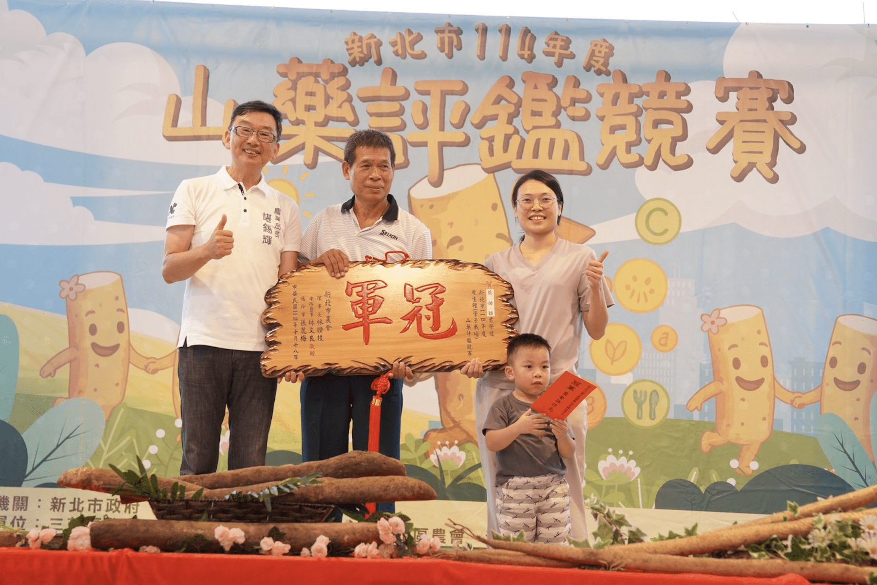 農業局長諶錫輝(18)日出席「114年度山藥評鑑競賽」,此次評鑑將來自瑞芳、雙溪、貢寮、三芝、淡水、汐止、石門及平溪等區的優秀農友齊聚台北希望廣場,共展出超過59點山藥參賽。競賽依品種及栽培方式分組,經專業評選,最終由簡佑穎農友奪得「原生種穴管栽培組」冠軍。邀請民眾於10月24日前往雙溪產地展售會,選購最新鮮、最優質的新北山藥。