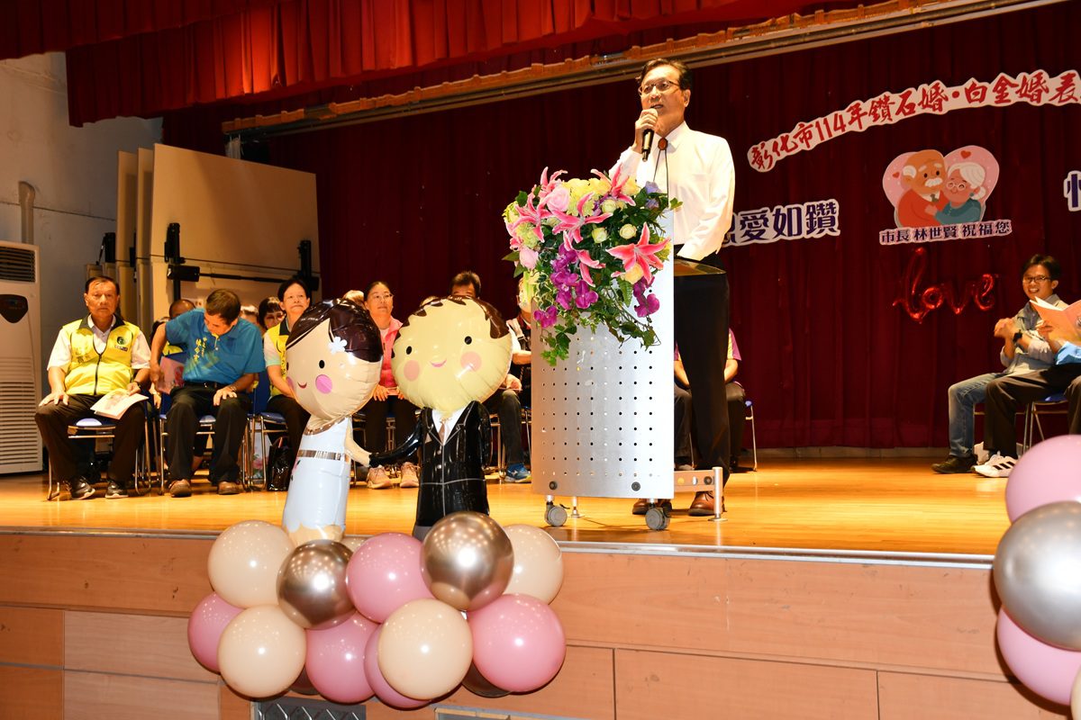 彰化市鑽石婚暨白金婚夫婦表揚 林世賢:夫婦攜手共度一甲子是前世修來的福份