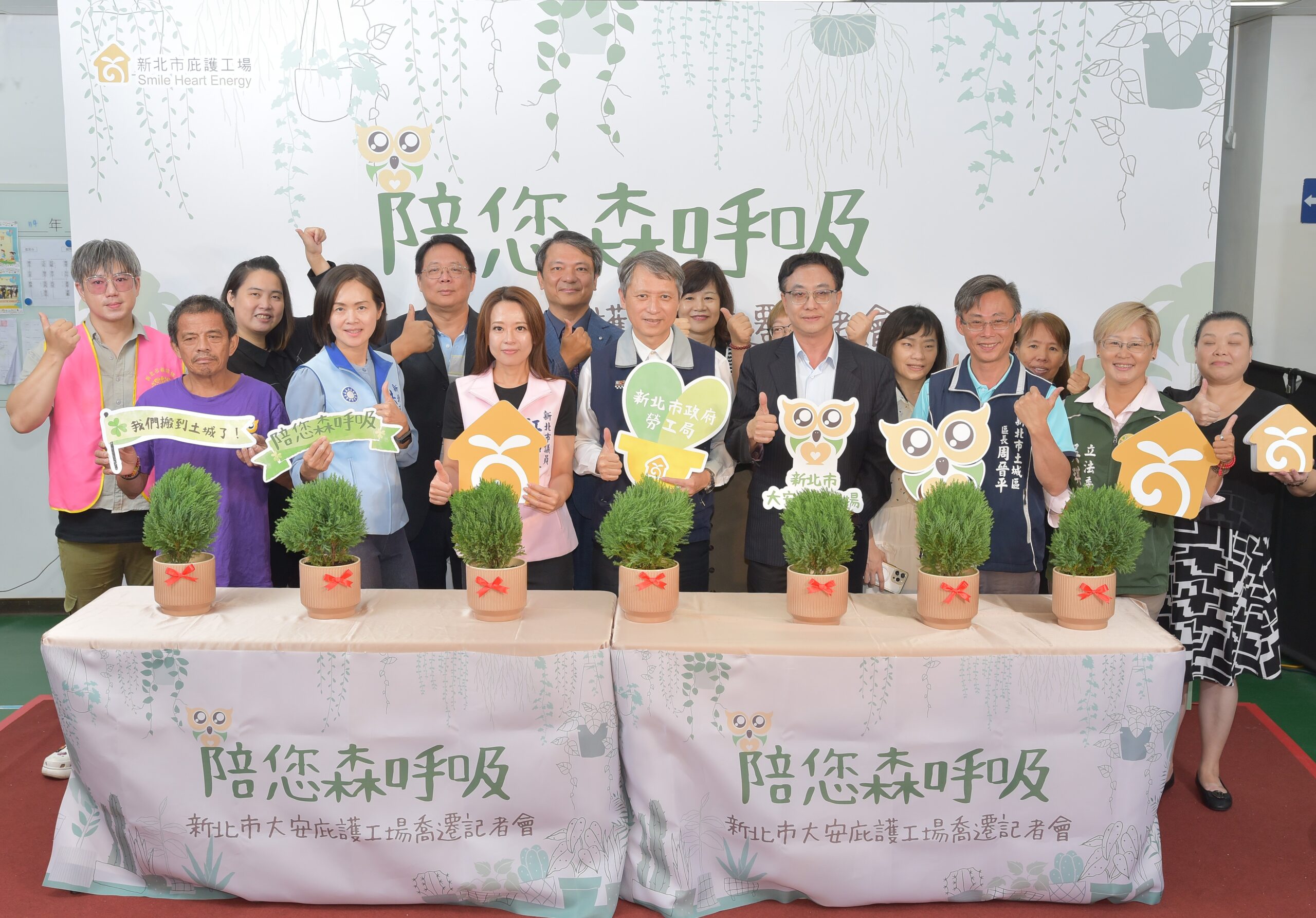 為打造更好的工作環境及方便的交通,新北市大安庇護農場正式從樹林遷至土城頂埔共構大樓場地,並更名為「新北市大安庇護工場」,新北市勞工局(21)日舉辦喬遷活動,局長陳瑞嘉與新北市視障協會理事長陳嗣民、議員江怡臻、議員洪佳君及土城區長周晉平,共同為庇護工場灌溉象徵希望的植栽,寓意為工場注入生機與活力。