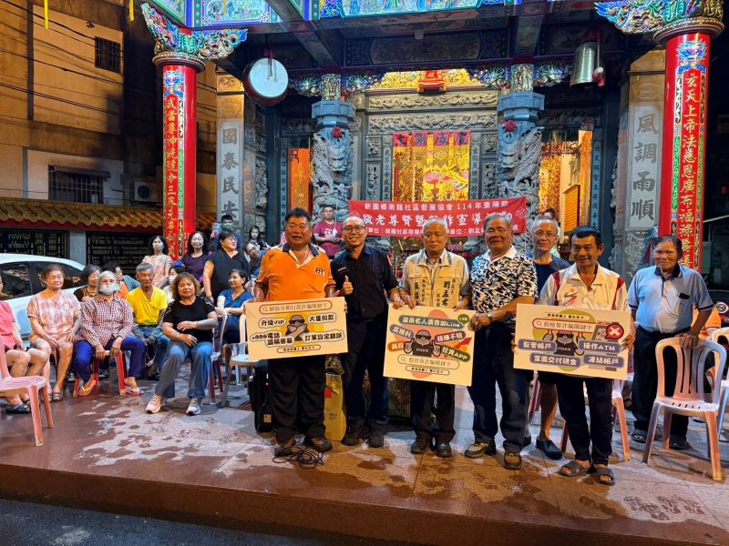 新園鄉南龍社區與議員劉孟君服務處於近日共同舉辦114年重陽節活動,興龍派出所所長童聖哲與警員賴儒慧以面對面的方式,提醒長者要提高警覺,特別是在網絡詐騙、電話詐騙等方面,如何識別假冒公務員或銀行人員的詐騙手法,並提供了應對策略;同日巡佐黃光輝也至新園鄉鹽埔仔審判堂轎班會向民眾宣導對「反詐騙165專線」及「假冒公務機關詐騙」、「ATM解除分期付款」、「假投資及虛擬貨幣」、「假交友感情詐騙」等詐騙集團常用手法,兩場活動現場熱鬧氣氛中與村民們共同迎接重陽節。