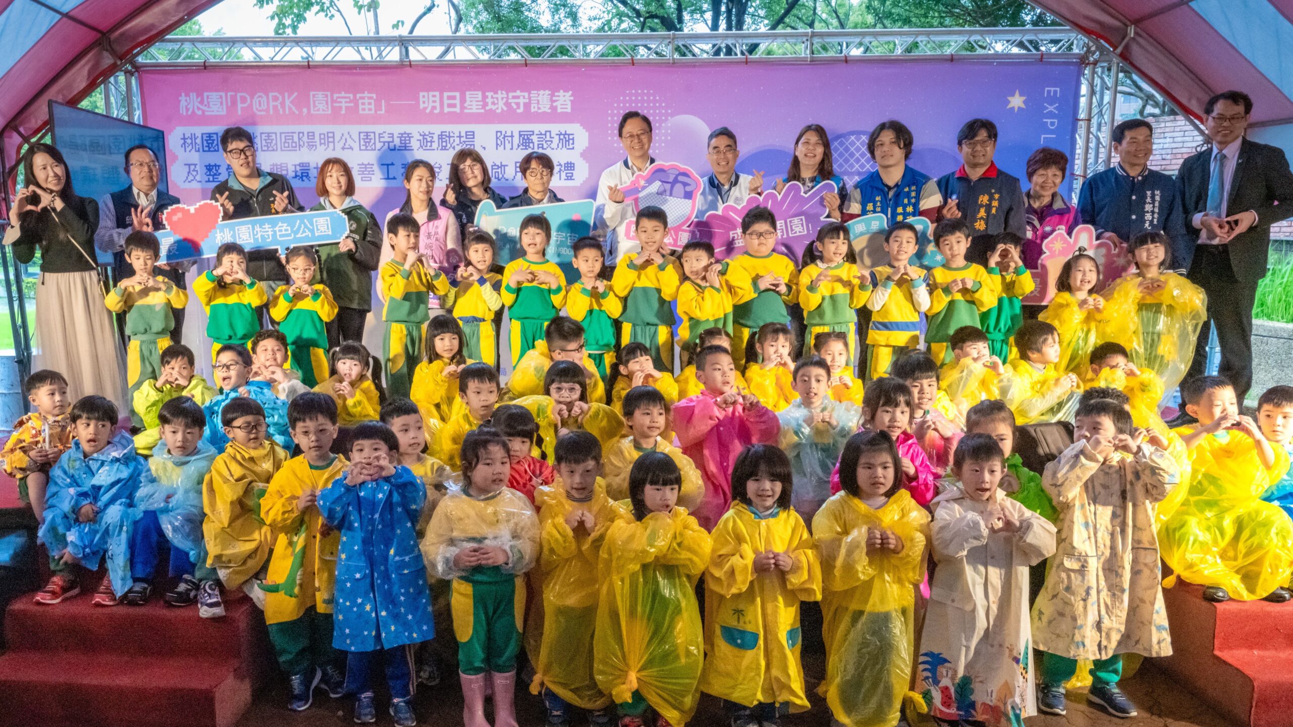 張善政指出,過去2年市府致力打造「P@RK,園宇宙」,輪番整修並興建特色公園,今年(114)迎來開花結果,大園華興池公園、中壢光明公園、龍潭運動公園、平鎮運動公園等皆陸續啟用,歡迎大朋友、小朋友及在地鄉親一同至各特色公園踏青遊憩。