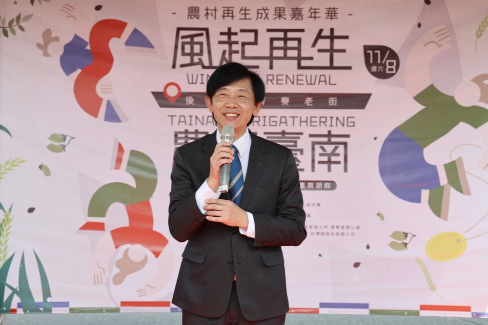 臺南市政府農業局11/8日在後壁區菁寮老街盛大舉辦農村再生成果嘉年華,今年活動主題為「風起再生 農聚臺南」,除了向社會大眾展現臺南經歷丹娜絲颱風災後復原再生面貌,也整合今年農村再生相關計畫,透過靜態展示、動態展演、農村市集,全面展現臺南農村的具體成果。