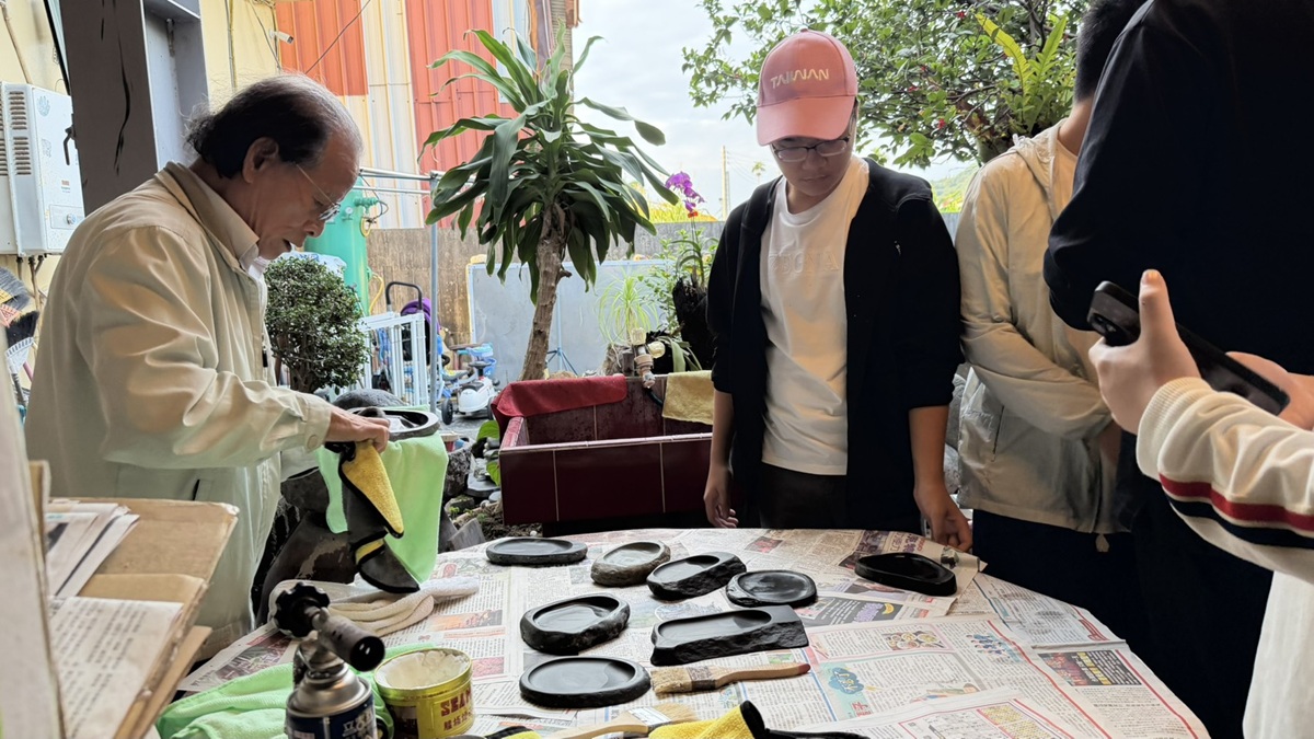 ▲老師示範拋光石硯工序,學生近距觀摩體驗。(圖/參山國家風景區管理處提供)