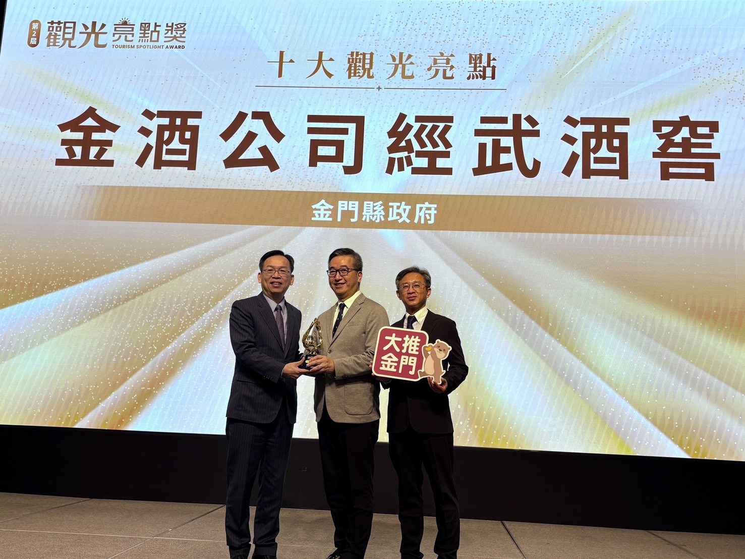 交通部觀光署攜手全臺52個中央部會、地方政府及民間公益法人,共同舉辦第2屆「觀光亮點獎」,歷經113萬人次全民票選及多元領域專家評審,選出「十大觀光亮點獎」、「最佳國際推薦獎」、「最佳國旅創新獎」及「最佳人氣獎」等獎項,並於今(11/11)日在臺北隆重舉行頒獎典禮。金門觀光再創佳績,金酒公司「經武酒窖」奪「十大亮點獎」殊榮,金城鎮「後浦十六藝文特區」、烈嶼鄉「習山湖公園」與金湖鎮「陳景蘭洋樓」三大景點榮獲「最佳人氣獎」。