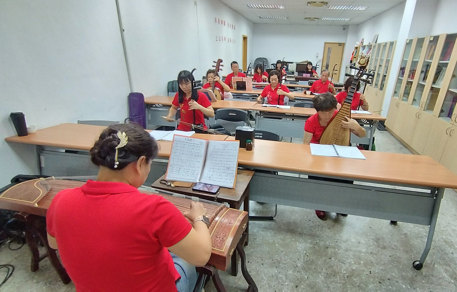 ▲傾韻絲竹弦箏樂團團員們,為台中巡迴音樂會作預演練習。(圖/記者陳立驌攝)