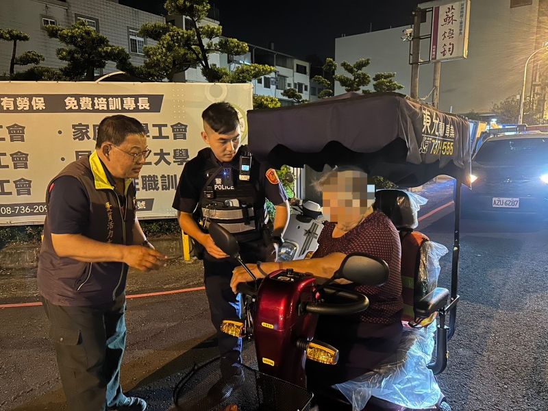 首先員警確認劉嬤身體狀況尚可,自己的基本資料也能對答如流,同時確認劉嬤獨居後,一邊將電動代步車推移至安全處,一邊安撫阿嬤情緒,並主動提供協助以巡邏車載送阿嬤安全回家,而後再返回現場合力將阿嬤的電動代步車一步一步推回去,確保人車平安無虞,讓劉姓阿嬤非常感動,頻頻向熱心幫忙的員警深深道謝。