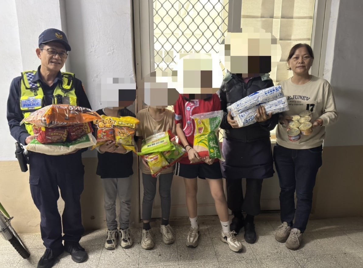 石光派出所副所長吳德懷、警員吳宗憲及派出所志工尤秀卿等人,日前聽聞佳冬鄉昌隆村有一家庭經濟陷入困頓,楊男(單親爸爸)做鐵工維生,一肩扛起家庭生計,不料楊男工作結束後返家途中發生重大車禍必須長期住院接受治療,家庭頓時失去經濟支柱,三名就讀小學的女兒如今只能與祖母相依為命,石光所員警得知此情形後便結合轄區善心人士捐助善款,並購買白米、泡麵、餅乾、罐頭等生活用品,雪中送炭幫助弱勢家庭渡過眼前難關。