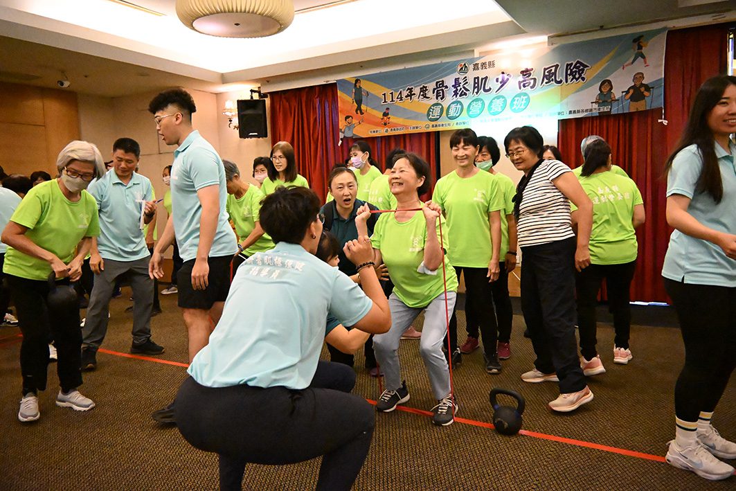 ▲「骨鬆肌少高風險運動營養班」學員展現肌耐力訓練成效。(圖/嘉義縣政提供)