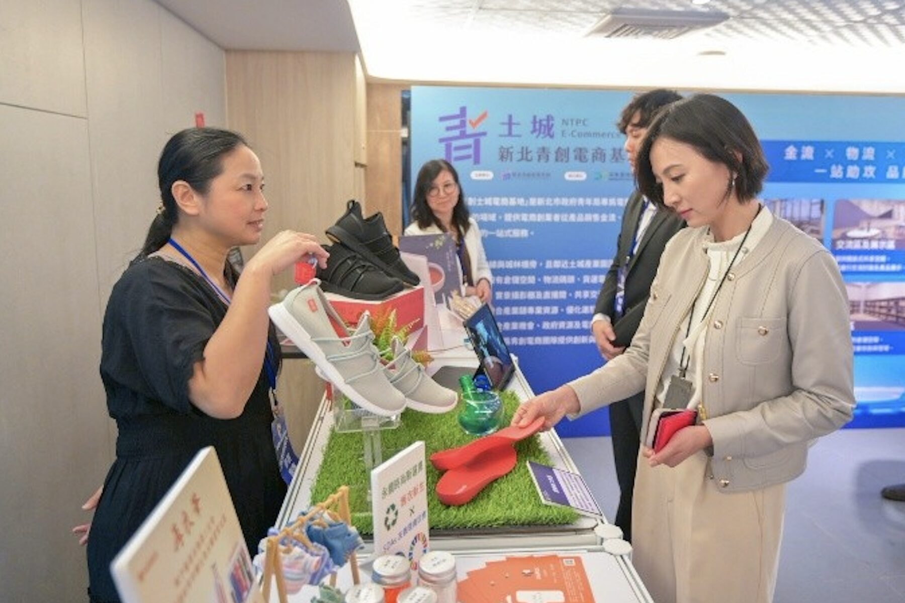 「土城電商基地」自今年3月開幕啟用以來,已對20組進駐團隊提供不同階段的創業需求,包含顧問專業輔導、資源媒合、實戰課程培訓與基地空間資源。基地內提供實景攝影棚、直播間、創業教室以及新設的獨立辦公室等硬體設備,滿足創業團隊從拍攝、行銷到營運的一站式全方位需求;並媒合知名跨境電商平台–亞馬遜全球開店、日本樂天市場專案合作機會,提供進駐團隊上架平台、行銷資源等輔導資源,協助青年團隊加速商業模式成形、拓展品牌市場。