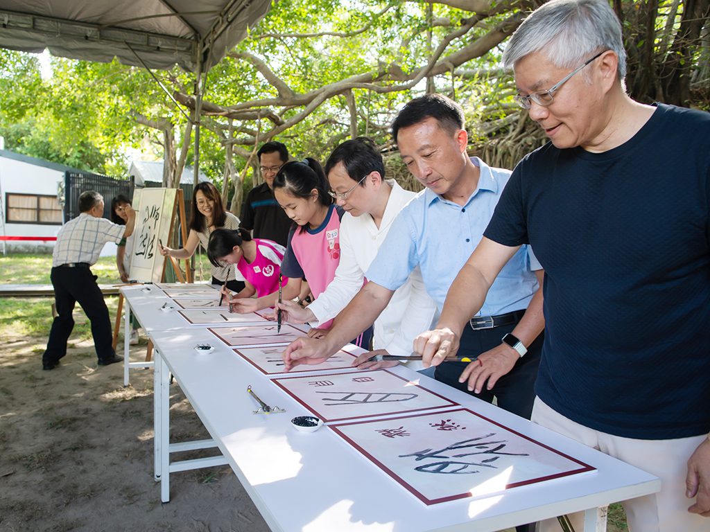 【記者吳玉惠/臺南報導】 台積電文教基金會主辦第18屆「台積電書法暨篆刻大賞」,以「師法自然」為主題,今(29)日下午與臺南市政府文化局合作,在有「活的建築」之稱的安平樹屋舉辦首屆「台積電書法小學堂」戶外教學活動。活動邀請臺南市大光與成功國小32位學童參與,台積電文教基金會董事王建光、執行長許峻郎、臺南市文化局專門委員方敏華與書法家黃宗義等貴賓,共同題寫「天人合一,大小自然」,為本屆大賞揭幕。臺南市文化局黃雅玲局長也特地抽空,現身為台積電書篆大賞讚聲。