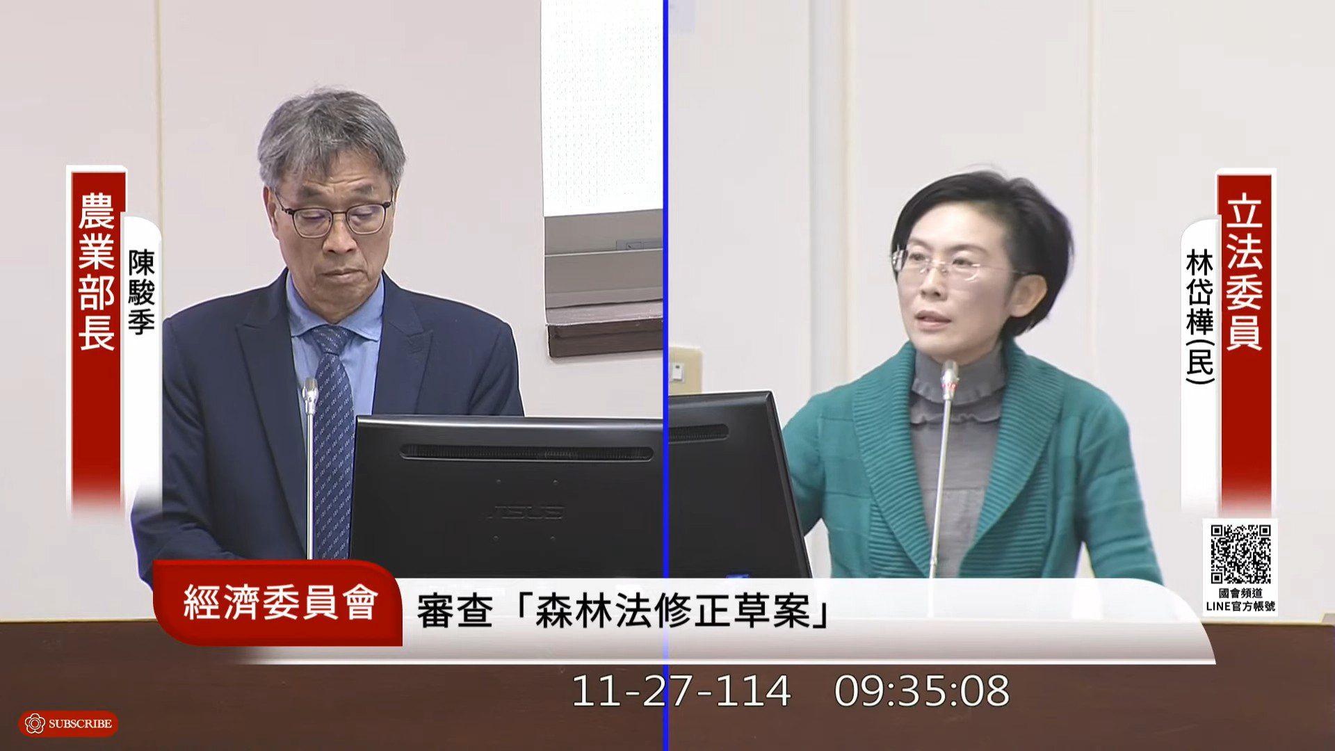 林岱樺強調,總統賴清德已重啟公地放領,協助1976年前合法承租並持續農用者承購土地;同樣精神也應納入國有林地的歷史住民。「在161萬公頃國有林地裡,不只有樹,也有一代又一代住在那裡的人。同一個家庭,在地籍上可以被叫做占用戶,在國家的記憶裡,應該永遠叫做國民。」她表示,修法目的並非犧牲森林保育,而是維持保育前提下,承認山區居民的法律地位,讓台灣的森林政策既能保護山、也能保護人。
