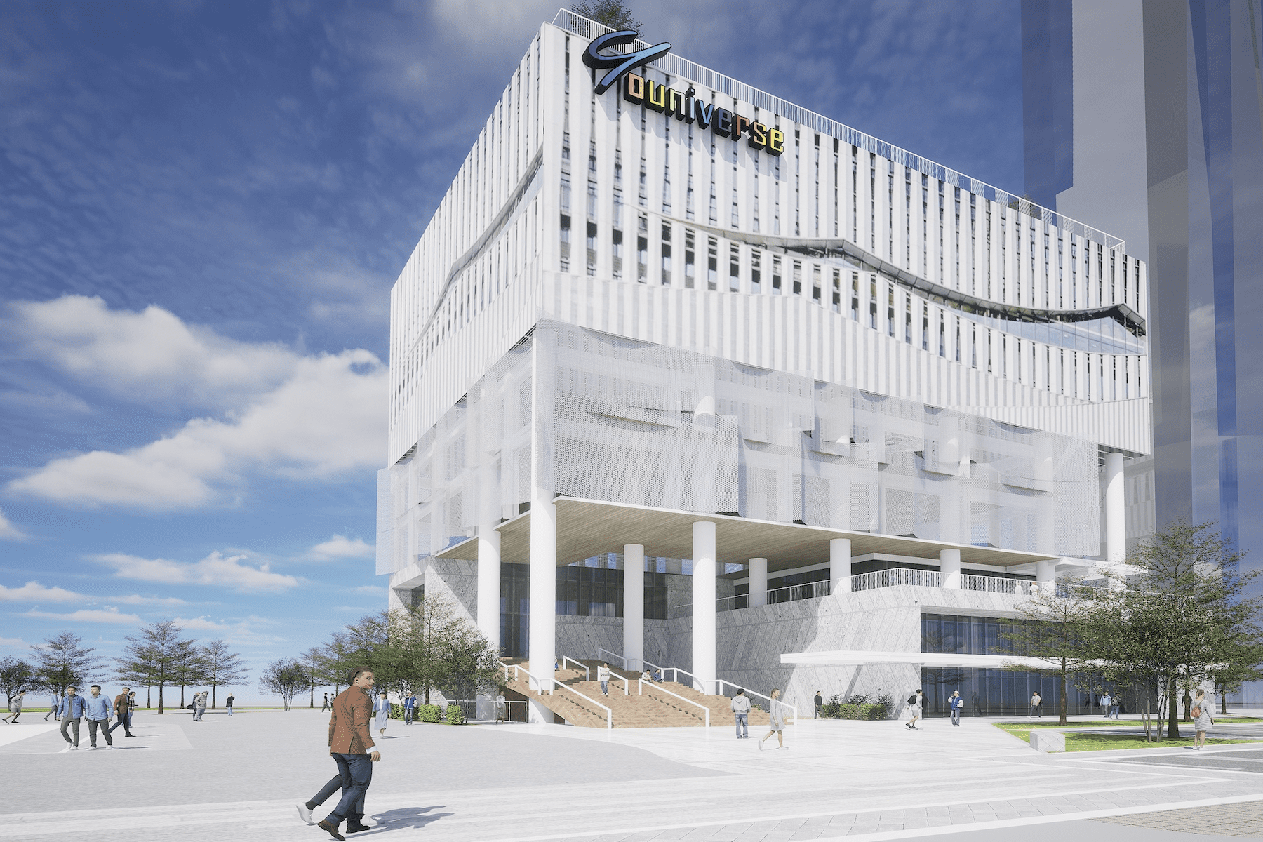 新北市政府同步發布「You-niverse」場館的設計圖,這棟獨棟 8 層樓的青年基地將保持明亮採光,並且特別保留一、二樓為開放式空間,作為半露天舞台與青年實驗性商場,讓青年創意更能與市民無邊界互動,進一步推動區域文化發展。青年局局長邱兆梅表示:「一、二樓半露天空間,是保留提供給學生社團、獨立樂團等獨立表演藝術團體的展演空間,希望藉由開放的空間設計,讓鄰近民眾能輕易接近,與場館內外發生的展演互動,使青年創意能感染周邊生活氛圍。」