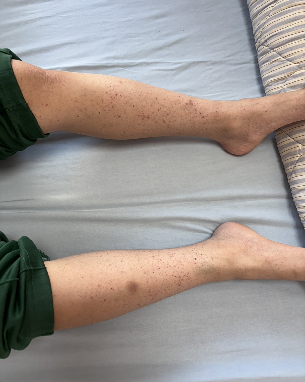 彰化8歲陳姓男童全身皮膚無故出現密密麻麻的小血斑點,隨後剔牙弄傷牙齦竟血流不止,嚇得嚎啕大哭,到衛福部彰化醫院就醫抽血發現其血小板數低至每微升僅有3千(正常15萬至40萬),馬上住院治療,父母驚嚇「難道是血癌?」最後確定是「免疫性血小板低下紫斑症」。醫師呼籲民眾若發現莫名皮下出血不要輕忽,還是要盡快就醫。