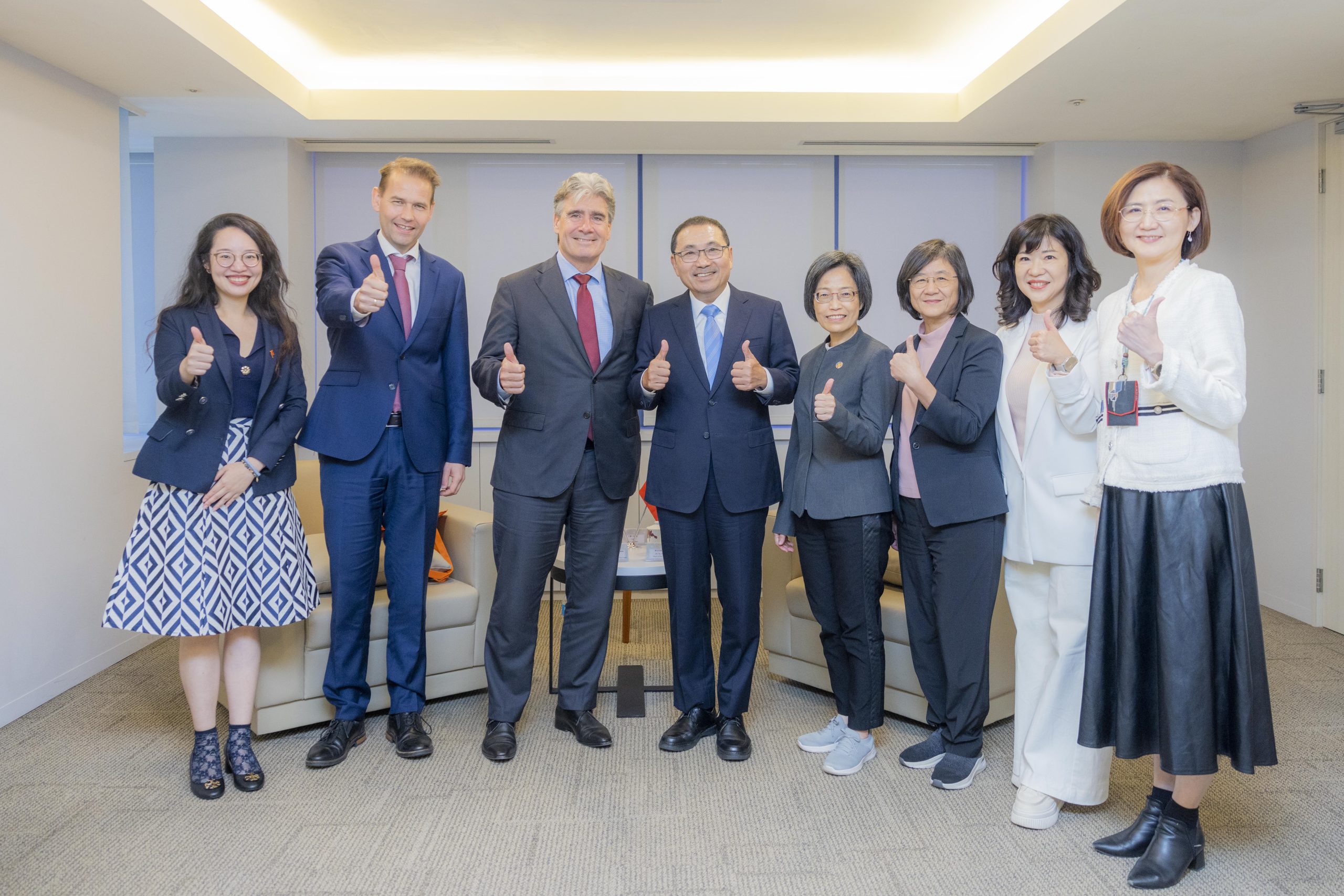 浦樂施代表於拜會中感謝秘書處先前邀請他與夫人參加坪林行旅,深度體驗當地茶文化。他表示,新北是一座非常值得多次造訪的城市,在高齡照護、智慧醫療及城市文化推動方面展現豐沛能量,並與荷蘭在政策思維與產業發展上高度契合,期待未來持續擴大合作層面,促進雙方共同進步。