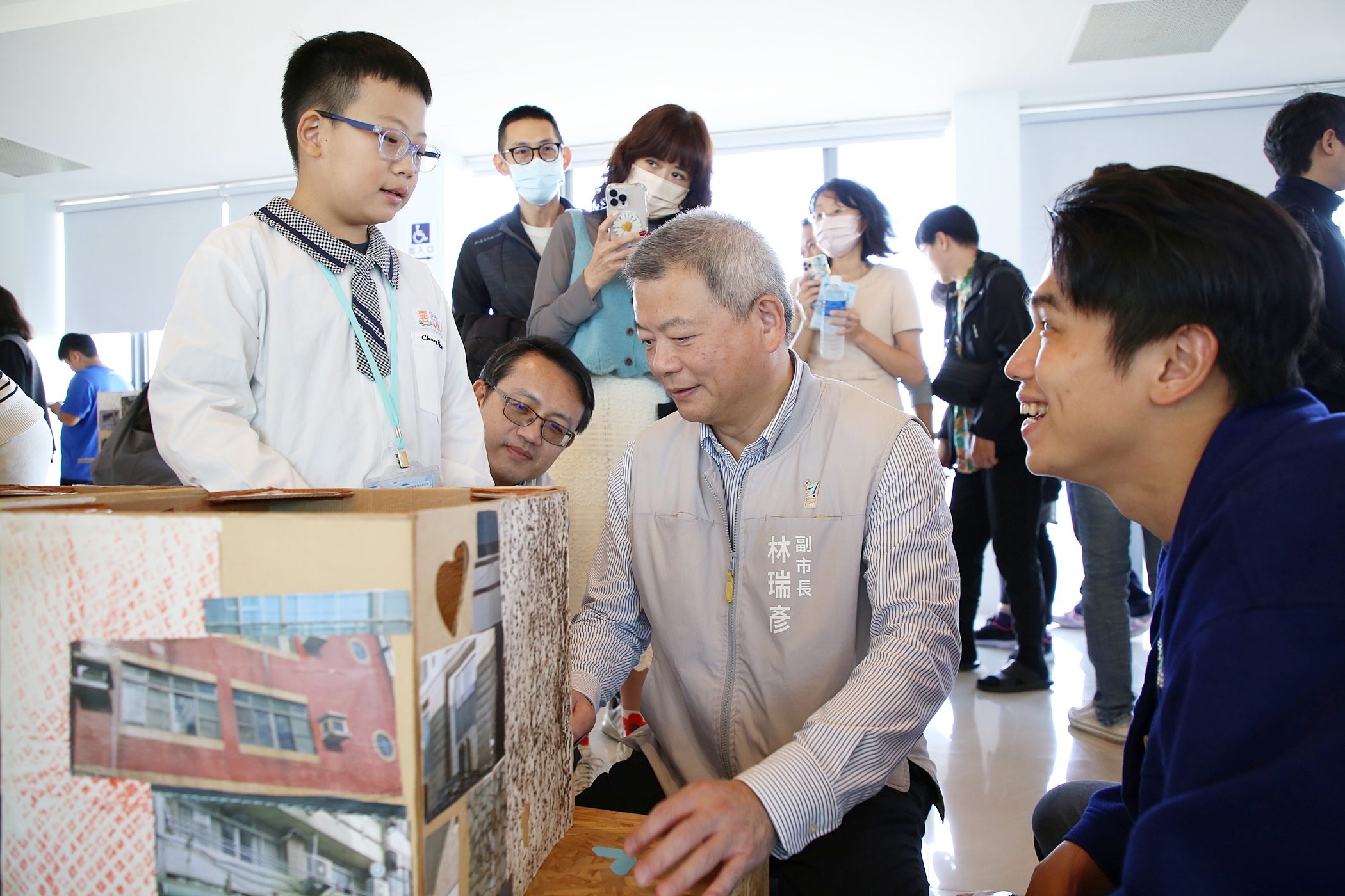 副市長林瑞彥表示,看到今天的成果展,心裡非常感動,也羨慕同學有這麼多優秀且熱情的藝術家陪伴創作、啟發視野。校園藝術展覽計畫今年已邁入第六年,讓更多孩子得以透過藝術探索城市與自我。今年也是嘉義市建城 321 年,將舉辦「320+1 城市博覽會」,「+1」不只是象徵延續,更代表持續累積、持續成長。每一個「+1」都來自大家對嘉義的關懷、投入與努力,讓城市一步一步變好。