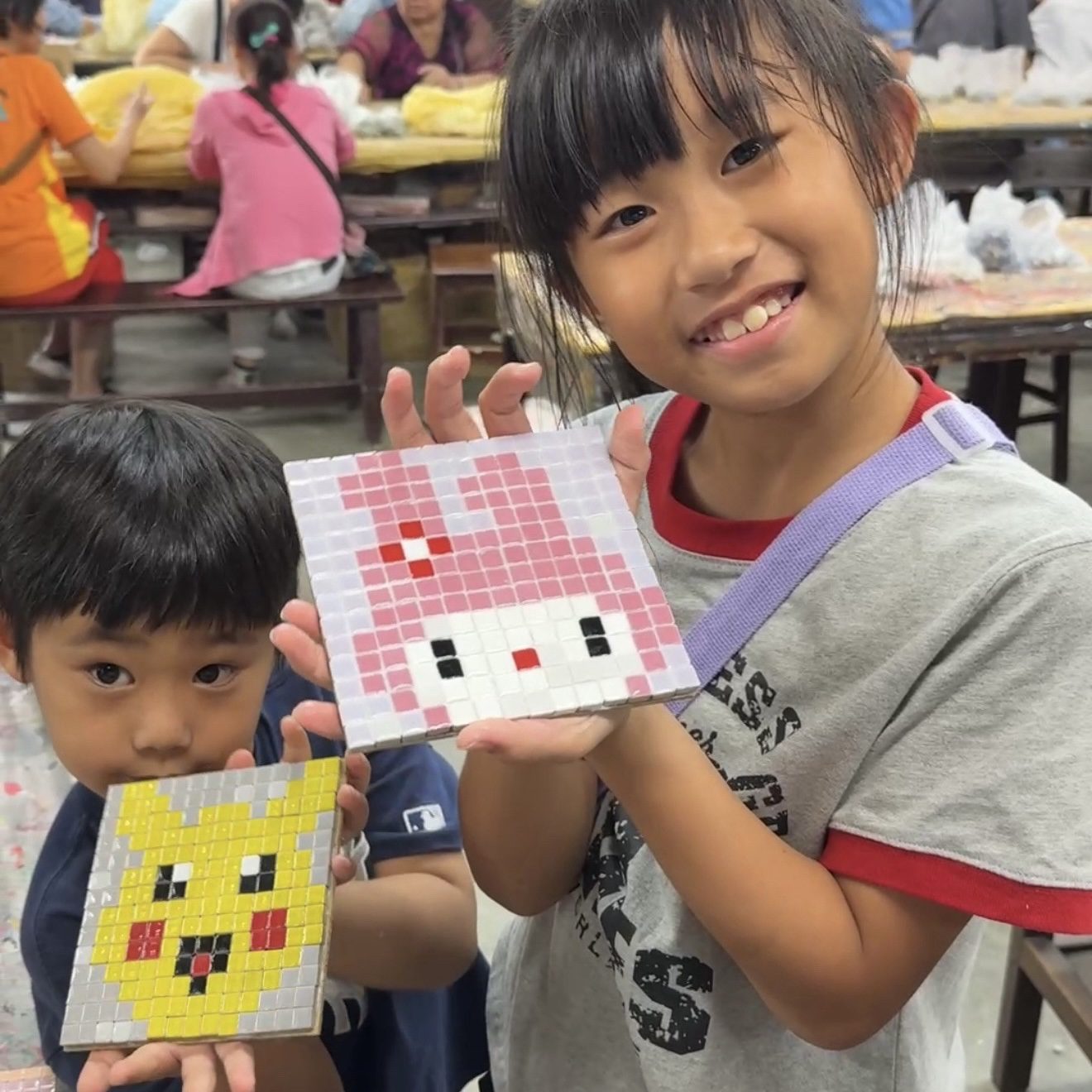 ▲親子網紅安安一家在板陶窯體驗馬賽克拼貼,感受交趾剪黏工藝魅力。(圖/嘉義縣文化觀光局提供)