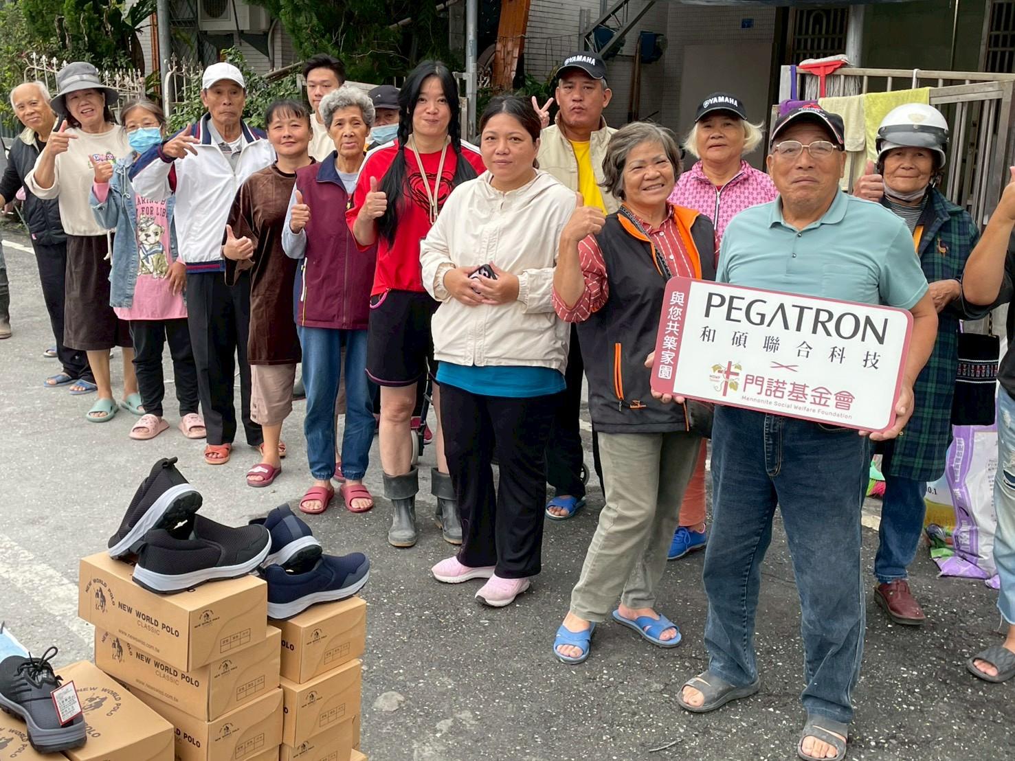 ▲門諾基金會發放全新休閒鞋,陪伴光復災民溫暖度過寒冬。(圖/門諾基金會提供,下同)