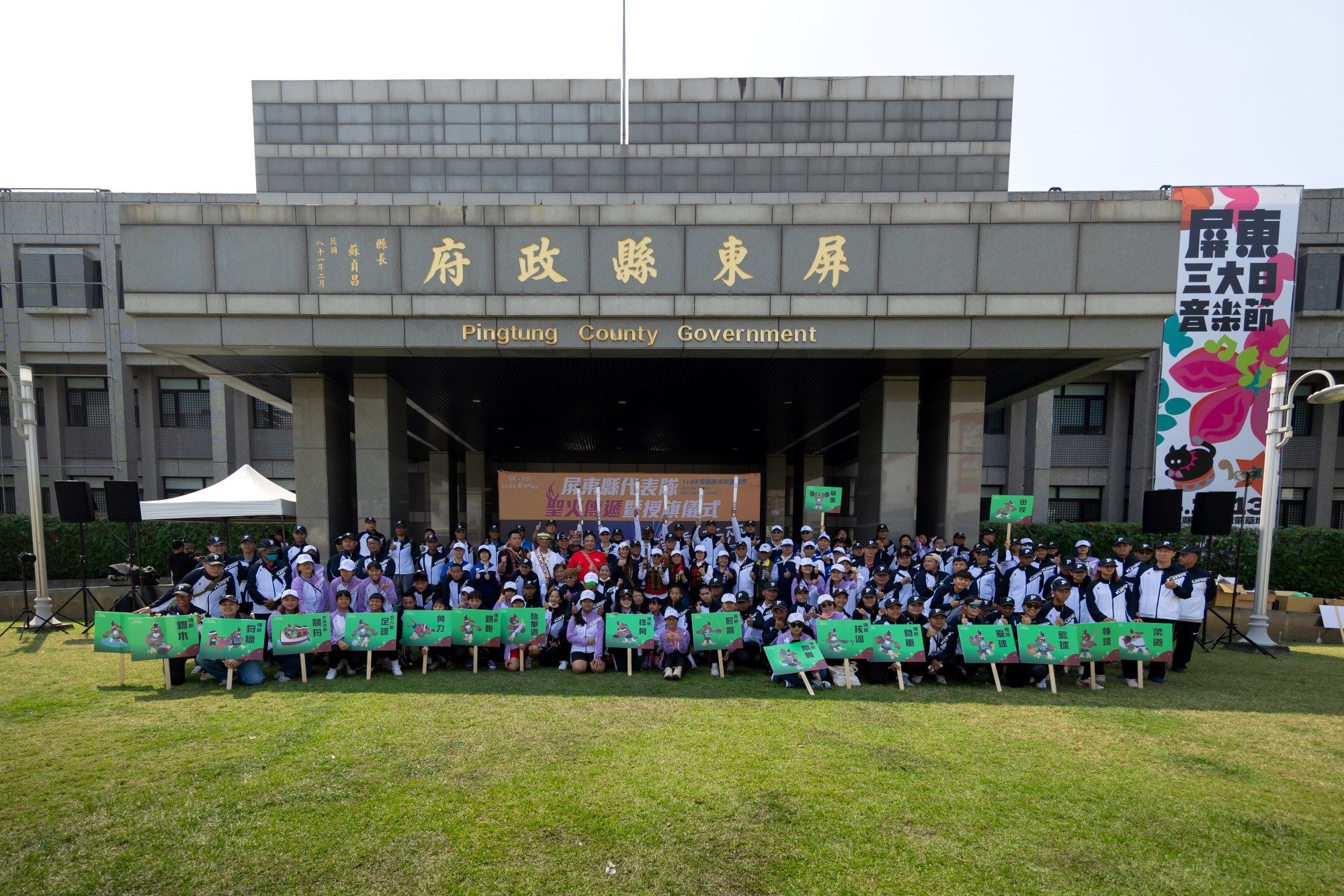 114年全國原住民族運動會將於3月21日至24日在高雄市隆重舉行,競賽項目包含傳統運動與現代體育,展現原住民族文化特色與體育精神。屏東縣代表隊此次派出選手及隊職員近900名,為屏東隊史上最多人數參與的一屆,將參與包括傳統拔河、傳統射箭、傳統摔角、傳統狩獵、柔道、跆拳道、棒球、五人制足球等多項競賽,力爭佳績,代表隊選手在授旗儀式結束後齊聲喊出口號,士氣高昂,展現全力以赴的決心。