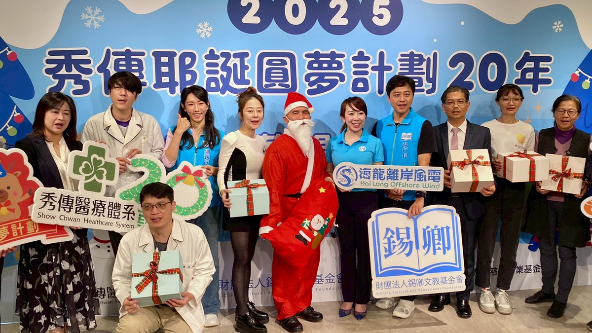 秀傳醫療體系自2006年發起「秀傳耶誕圓夢計劃」,今年邁入第20年。今(23)日舉辦圓夢送禮物活動及「20週年特展」,回顧歷年成果與公益足跡。今年在社會大眾及企業團體支持下,成功點亮1,220份耶誕心願,為22家受贈單位弱勢與身障朋友帶來溫暖。台鋼雄鷹球星劉時豪和樂天桃猿投手呂詠臻特別出席力挺,向捐贈者致謝並與孩子互動,一同見證愛心延續。
