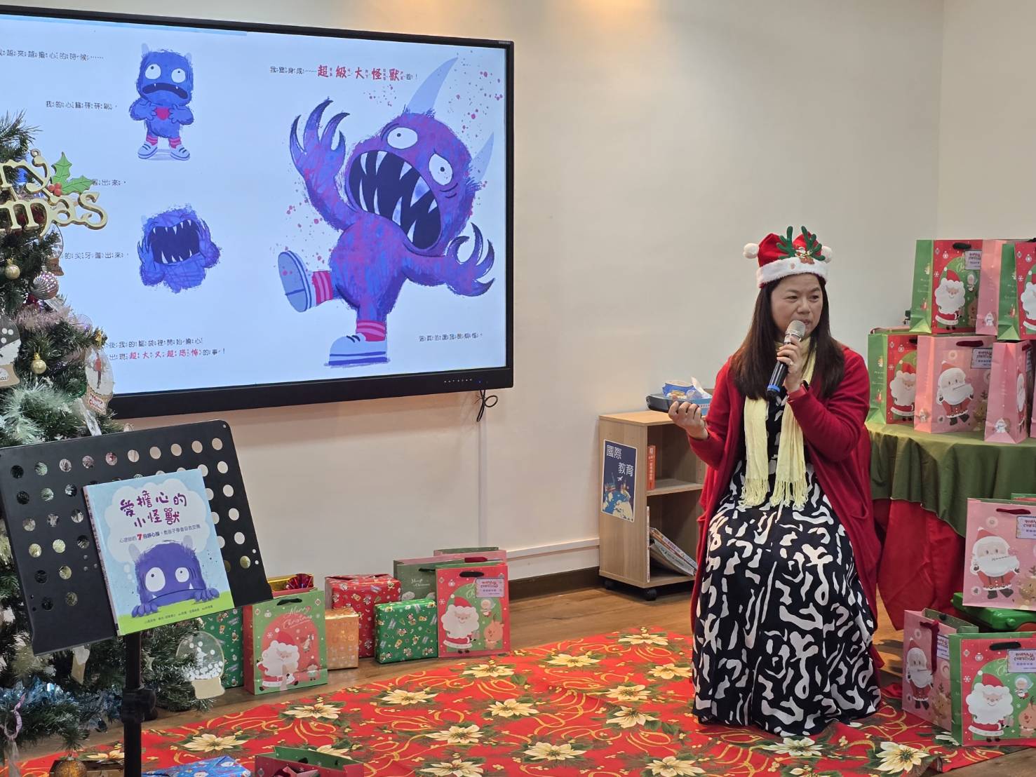 聖誕節前夕,東華附小幼兒園今(23)日舉辦「聖誕故事時光—校長說故事」活動,以繪本《愛擔心的小怪獸》為主軸,結合 SEL(社會情緒學習)理念,校長張慧娟期盼孩子們認識擔心、學習表達情緒,並練習讓自己慢慢安定下來,愉悅互動之間,活絡了現場氣氛。