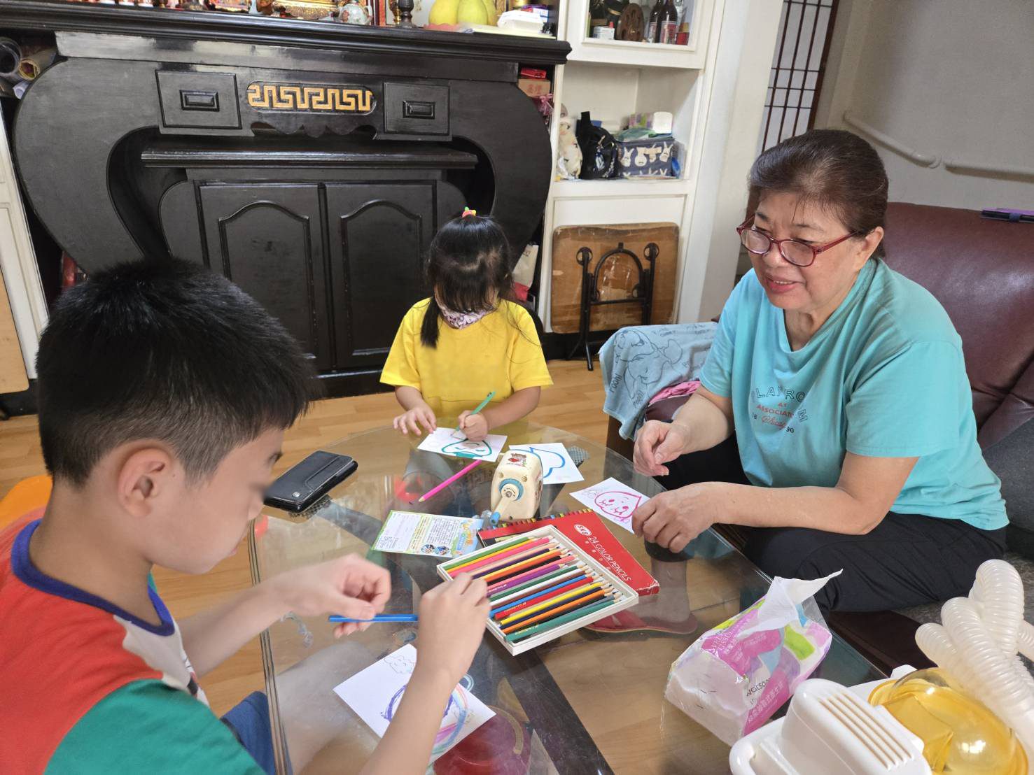 ▲蔡碧桃陪伴寄養童彩繪。(圖/新北市社會局 提供)