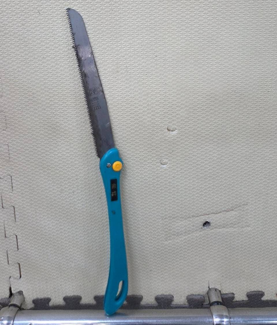 補充說明經了解,當時林男(66歲)騎機車從巷內竄出,差點撞上呂男(43歲),兩人停於路旁口角,林男從機車置物箱內取出黃色刀柄折疊鋸子(折疊長度約30公分,如示意照片),右手持鋸子作勢恐嚇呂男,惟未肢體衝突。
