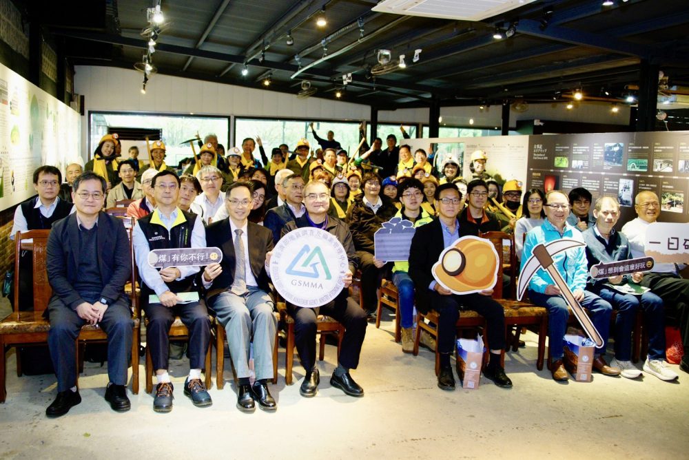 ▲「煤田群足跡—瑞芳至新平溪礦業文化記憶展」經濟部地質調查及礦業管理中心徐銘宏主任及志工引領與會貴賓「礦工一日體驗」合影。(圖/經濟部地質調查及礦業管理中心提供)