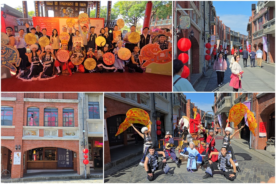 園區文昌街更以「傳統百藝」為主題,邀集交趾陶、泥塑剪黏等傳統建築工藝匠師,參與街屋立面裝飾工藝的創作。街區還以「剪紙窗花」為視覺語彙,將臺灣百工百藝匠人的身影轉化為街道窗景的藝術表現,剪紙窗花層疊、鏤空與光影交錯間,形塑一條「會呼吸、會轉換表情」的藝術街景,散發出濃厚而溫潤的年節喜氣。