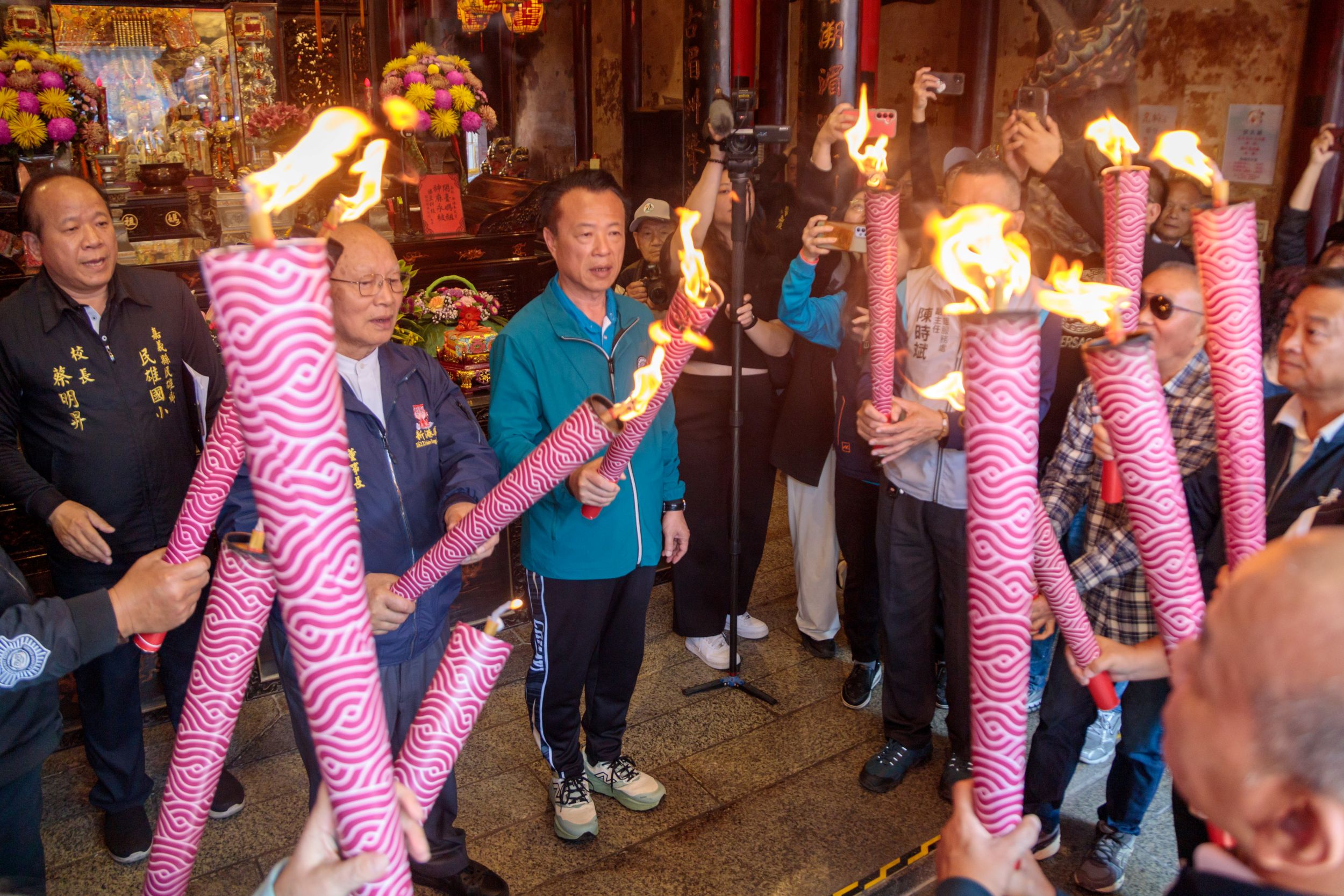 嘉義縣115年全縣運動會5日在新港奉天宮舉行聖火母火取火儀式,祈求「開臺媽祖」庇佑,所有選手都能勇敢面對挑戰,追求卓越。由縣長翁章梁、奉天宮董事長何達煌一同取母火,聖火將在3天內傳遞繞行全縣18鄉鎮市。