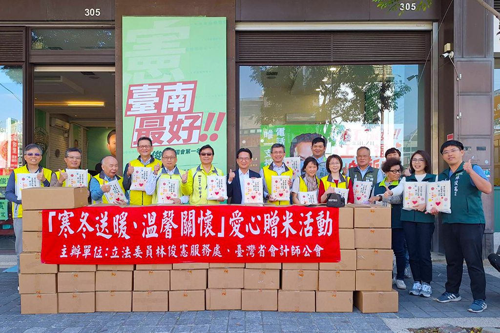 【記者吳玉惠/臺南報導】 歲末寒冬,社會的溫度往往來自一份份實際的關懷。在2026年農曆年前夕,長期投入公益行動的立法委員林俊憲於今(7)日攜手台灣省會計師公會舉辦白米捐贈活動,捐出1000包白米送往弱勢族群與社福團體,希望在年關將近之際,為更多家庭增添一份安心與溫暖,也盼拋磚引玉,帶動更多力量投入公益。