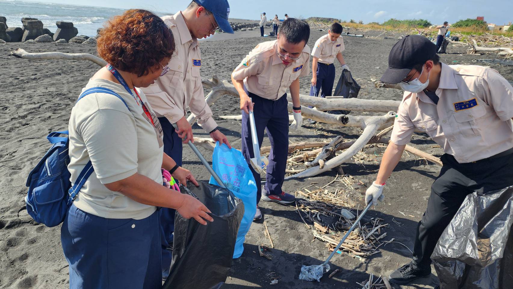 社會處說,下午活動移師佳冬鄉塭豐海邊,役男們頂著海風,親手撿拾沙灘上的廢棄塑料與雜物,以實際行動修復海岸風貌;隨後則回到活動中心,由趙錫清校長及大潭海洋教育創客中心志工團隊們,針對氣候變遷對屏東沿海的影響進行「海洋環境教育」深度解析,將勞動轉化為對永續發展的深刻反思。此外,亦於佳冬鄉塭豐社區活動中心同步辦理「性騷擾防治法」教育訓練,藉此提升役男的自我保護意識與職場性別友善觀念。
