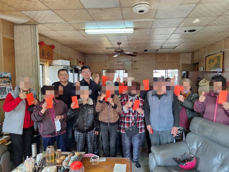 東港警分局東港派出所長黃奕鳴偕同共和里里長林國勝深入共和里社區,慰問28戶弱勢家庭發放紅包,盼能散播社會的愛心及關懷。