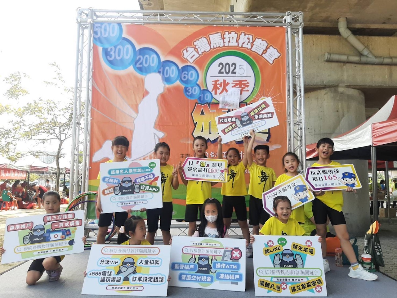 鑒於近年詐騙猖獗,「全民反詐」已成當務之急,東港警打詐預防團隊至現場向路跑愛好者與大小朋友實施反詐騙宣導,以生動活潑宣導方式向民眾宣導最常見詐騙手法,以「假投資」、「假愛情交友」、「解除分期付款」、「假網購拍賣」、「假檢警」類型,藉此提醒民眾重視反詐騙訊息、提高對詐騙電話的辨識,共同強化識詐、防詐、阻詐,加深正確預防觀念,避免陷入詐騙集團陷阱。