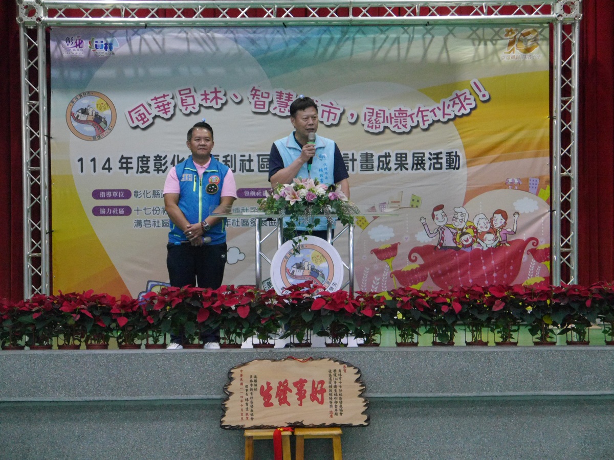 員林市公所今(1)日上午於西區體育館舉辦「風華員林、智慧城市,關懷作伙來」—114年度彰化縣福利社區化旗艦型計畫成果展,由新生社區發展協會理事長林育生及其團隊擔任領航社區,帶領大埔、溝皂、十七份及萬年社區共同展現一年來的豐碩成果。活動現場貴賓雲集,包括員林市代理市長賴致富、市民代表會主席張國良及各代表、彰化縣社會處副處長涂敏群、秘書賴沛然與游筑凱、縣議員張錦昆、各里里長、各社區理事長及地方仕紳等人皆蒞臨觀禮,共同見證社區總體營造的實踐成果。