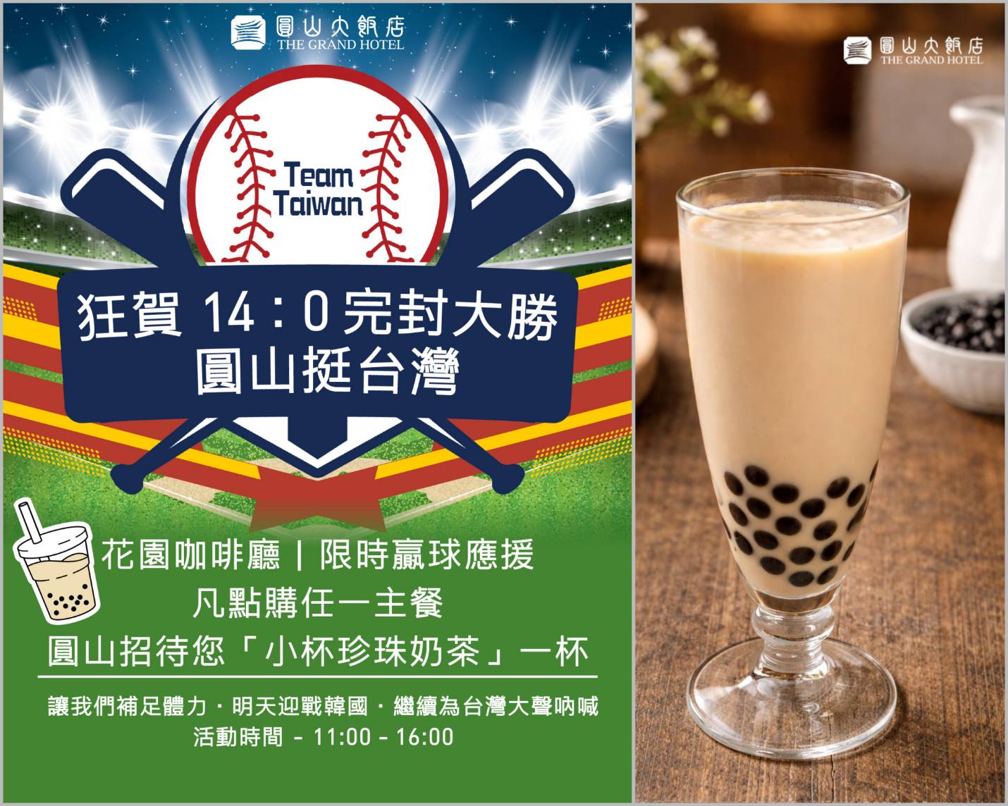 挺 Taiwan 完封大勝 圓山大飯店限時應援送珍奶