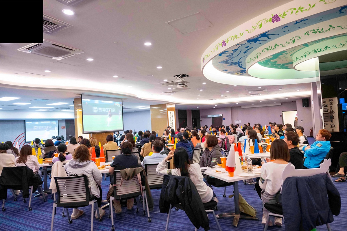 比賽開始後,現場氣氛迅速升溫。每當畫面出現台灣隊精彩攻守,全場隨即爆出掌聲與歡呼聲,彷彿置身球場看台。不少同仁邊看球邊揮舞加油棒,隨著比賽節奏緊張起伏,應援聲也越來越響亮。