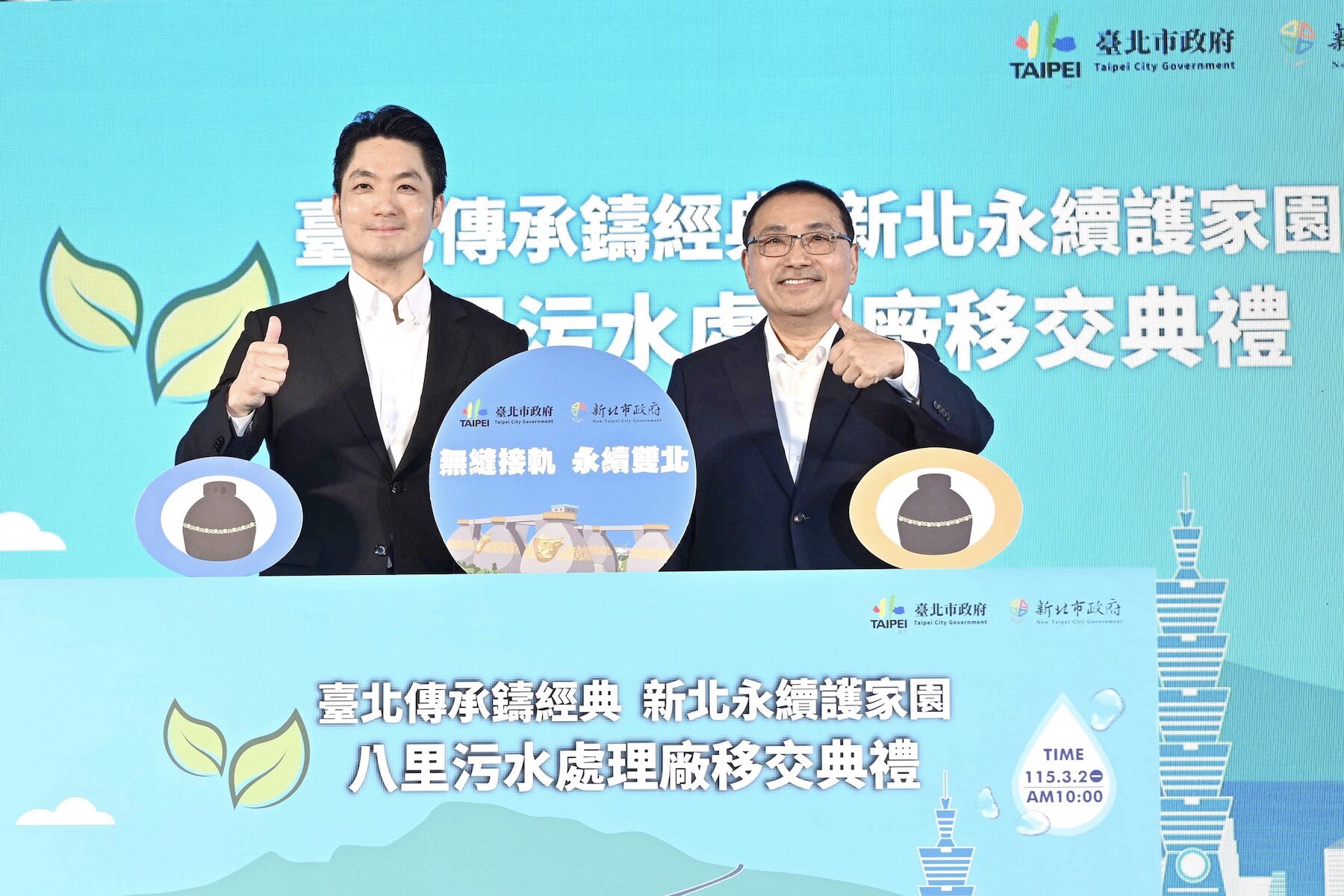 全臺規模最大的「八里污水處理廠」於(2)日由臺北市移交新北市,新北市長侯友宜表示,雙北市府自112年7月起進行全廠4,448項財產設備清點與功能測試等交接作業,新北市府會堅守服務品質並精進營運管理,共同守護雙北水環境。