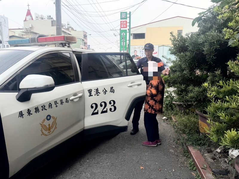 【記者何勁陞/里港報導】 屏東縣里港警分局九如分駐所警員陳俊嘉於日前獲報轄區內有一名阿嬤疑似迷途走失,到場後發現該名年邁阿嬤疑似患有失智症,對自己的年籍資料、住處地址均難以明白陳述。陳員貼心先將阿嬤帶到派出所稍作休息,經一番耐心細問及電腦資訊比對,終於查得身分,並由所長蔡惠茹、警員何泓駒將其以巡邏車載送平安返家,深獲家屬感激。