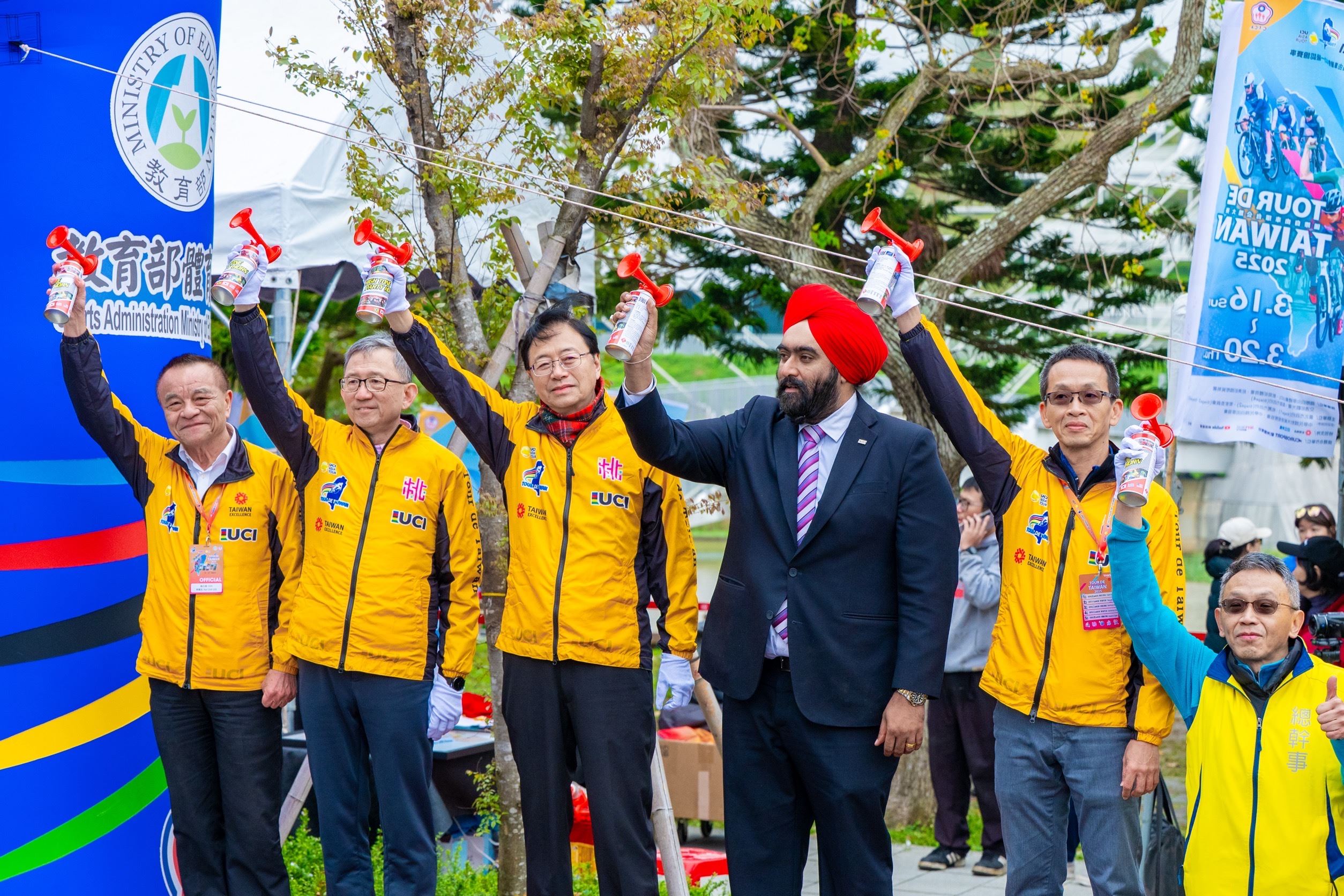 ▲張善政及貴賓鳴笛。(圖/桃園市體育局 提供)