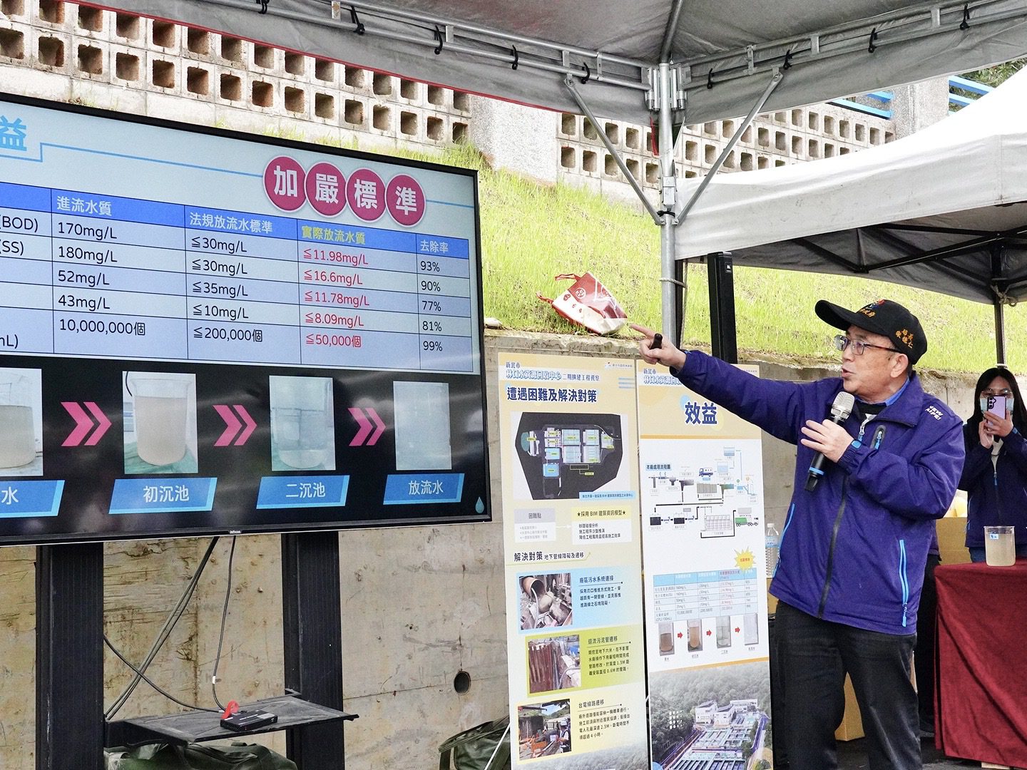 侯友宜表示,此次工程之受益民眾遍布林口全區,截至114年2月林口地區的用戶接管戶數已達5萬8,353戶,依國土署全國統一規定計算方式接管率達100.30%,服務超過13萬人,因應林口地區人口快速成長,水資中心二期擴建完工可服務超過都市計畫範圍於123年計畫人口17萬人的污水量,能具體改善林口地區之居住環境衛生及河川污染,維護居民之健康並可增進遊憩觀光資源。