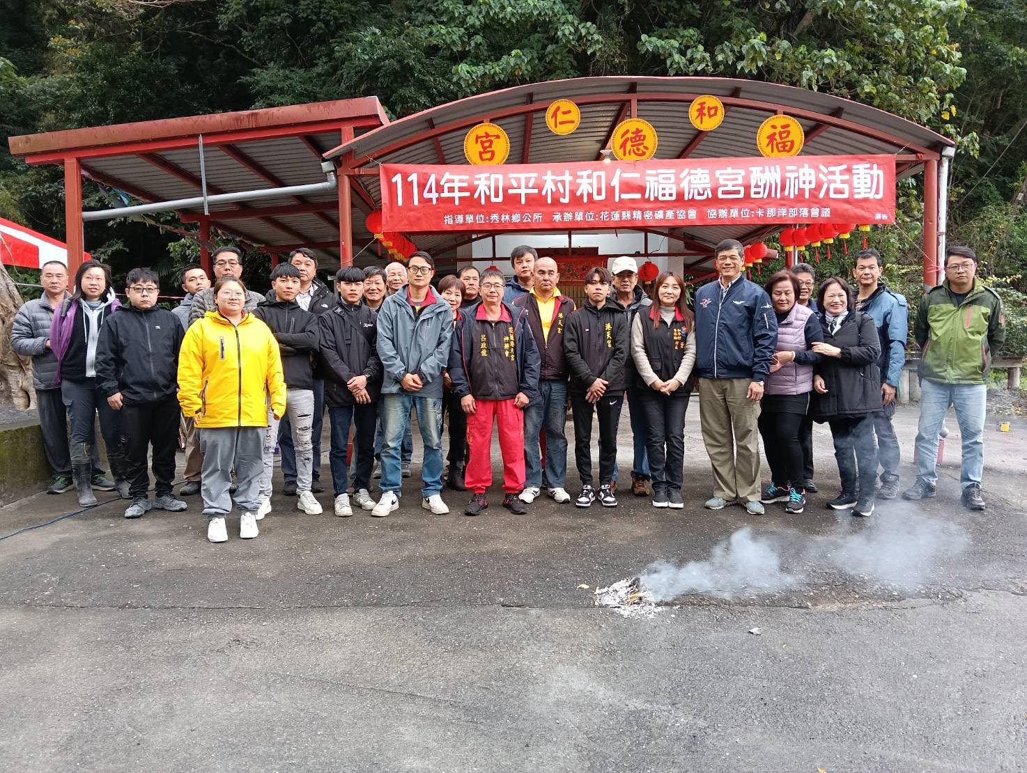 花蓮縣秀林鄉和仁地區福德宮日前廟慶,籌辦的花蓮縣精密礦產協會以迎神、遶境、團拜的方式,祈求土地公佑福,大家出入平安。